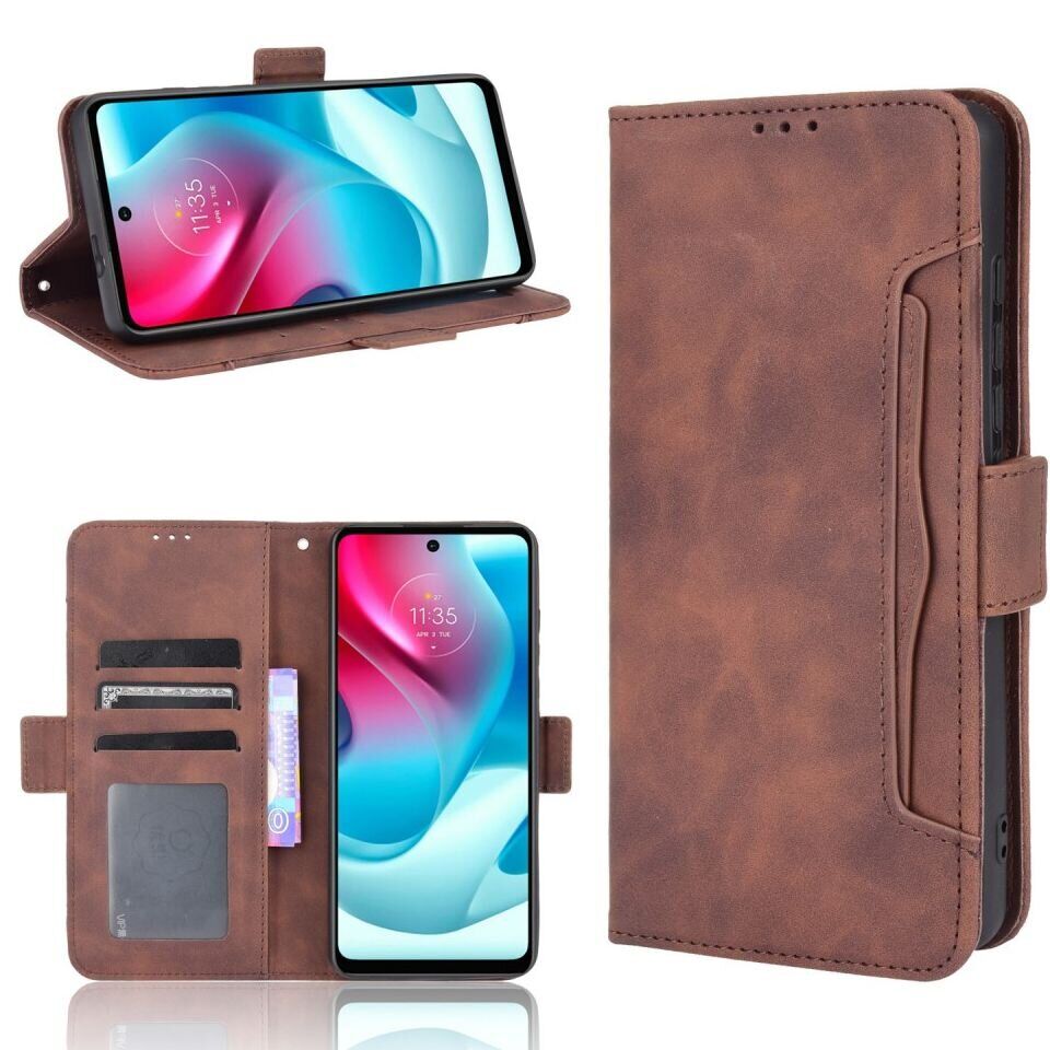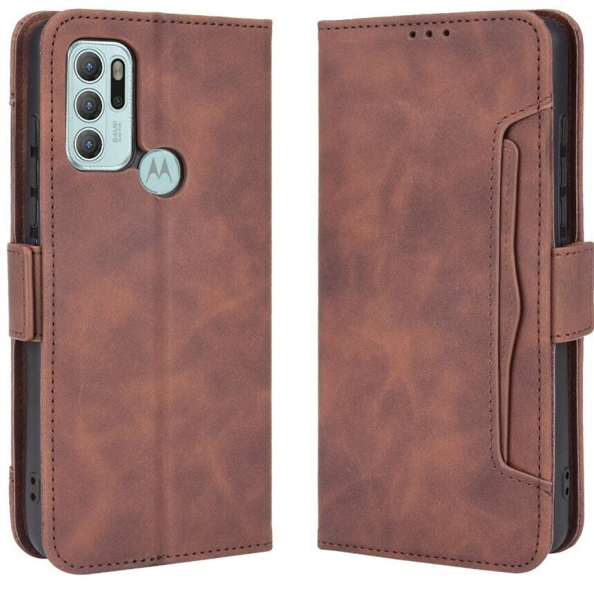 Чохол-книжка з кишеньками Deexe Wallet Stand для Motorola Moto G60s - Brown