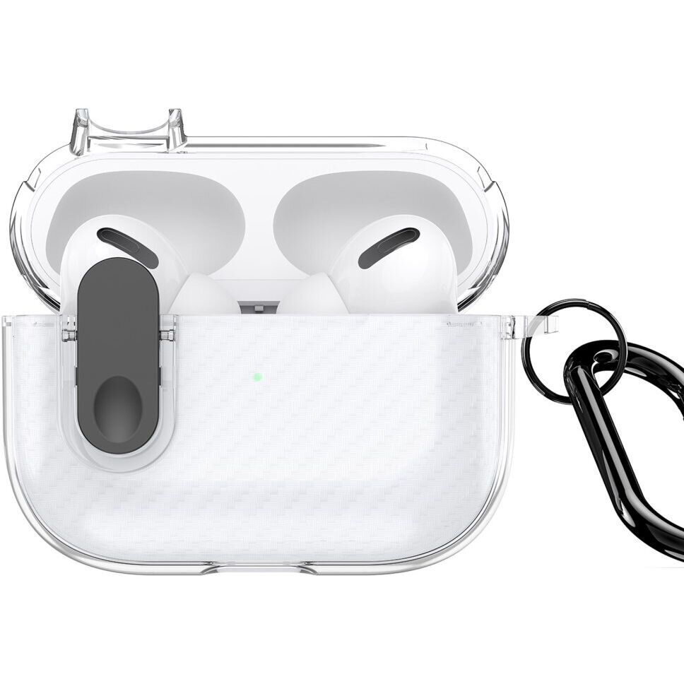 Захисний чохол DUX DUCIS PECK Series для Apple AirPods Pro 2 — це високоякісний аксесуар, призначений для забезпечення надійного захисту та зручності використання ваших навушників. Виготовлений з міцних матеріалів ТПУ і ПК, цей чохол гарантує оптимальний баланс між гнучкістю і довговічністю. Спеціально розроблена клямка для блокування забезпечує безпечне зберігання та легкий доступ до навушників одним рухом. Чохол сумісний як з дротовою, так і бездротовою зарядкою, дозволяючи підтримувати ваші навушники завжди зарядженими без необхідності вилучення їх з чохла. Крім того, в комплекті передбачений карабін з алюмінієвого сплаву, що робить чохол ідеальним супутником для активного відпочинку та подорожей. Двокомпонентна конструкція забезпечує простоту встановлення та зняття, а стильна текстура вуглецевого волокна з прозорим дизайном додає естетичної привабливості.