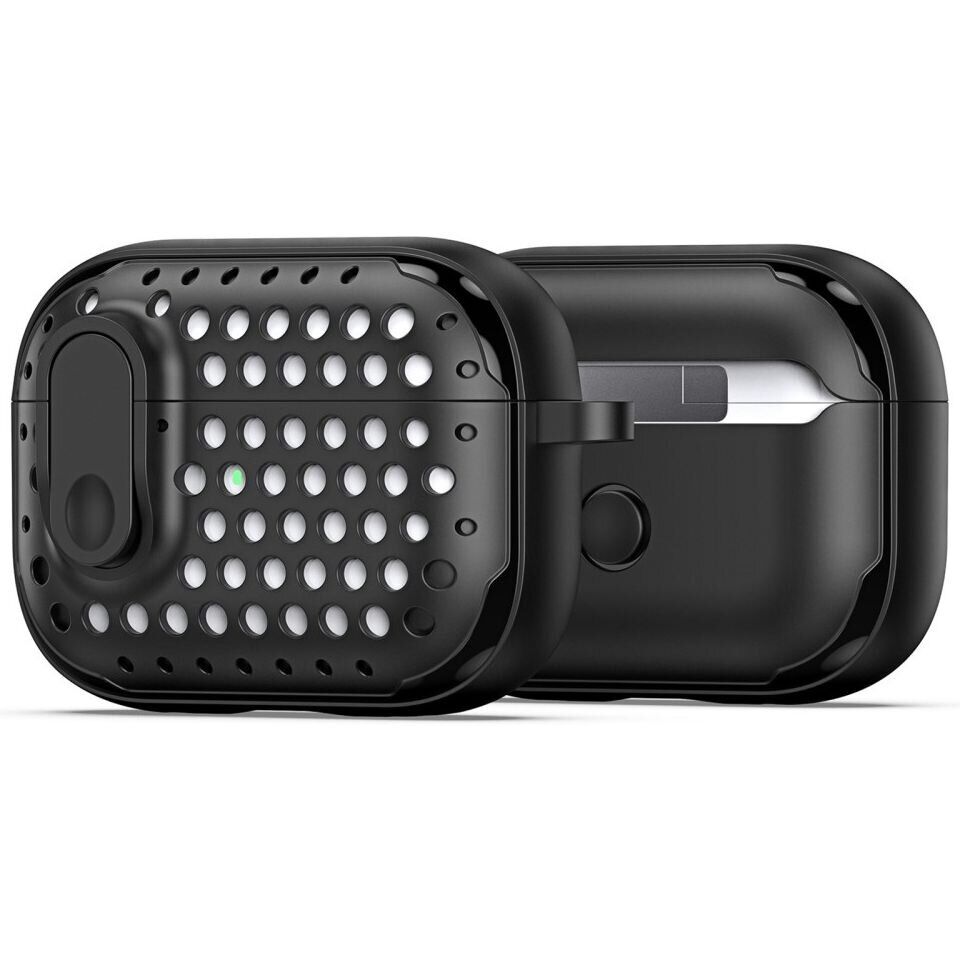 Захисний чохол DUX DUCIS PECM Series для Apple AirPods Pro 2 ідеально відповідає сучасним вимогам користувачів. Створений для забезпечення максимального захисту, цей чохол зроблений з високоякісних матеріалів TPU і PC, пропонуючи винятковий баланс між гнучкістю, довговічністю і міцністю. Його унікальний дизайн з круглими вирізами не тільки надає вишуканого вигляду, але й сприяє ефективному розсіюванню тепла, забезпечуючи збереження оптимальної температури пристрою під час використання. Кнопка фіксації кришки дозволяє легко керувати доступом до навушників, забезпечуючи швидке відкриття одним клацанням. Сумісність з дротовою та бездротовою зарядкою, а також видимість переднього світлодіода для відображення стану зарядки роблять цей чохол незамінним аксесуаром. У комплект входить портативний карабін з алюмінієвого сплаву, що робить його ідеальним супутником для активного відпочинку та подорожей.