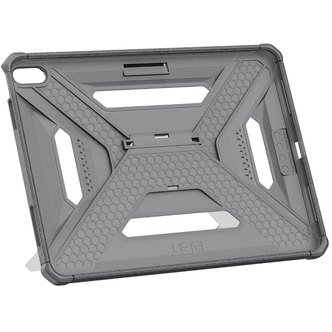 Чохол URBAN ARMOR GEAR Scout Plus для iPad Air 11 M4/M3/M2 (2026/2025/2024) — це універсальне рішення для щоденного захисту планшета, призначене для активного використання в сім’ї. Він поєднує міцність, легкість і зручність, роблячи iPad комфортним для роботи, навчання та розваг. Корпус виконаний з гнучкого та ударостійкого TPU-матеріалу, який ефективно поглинає удари при падіннях, зберігаючи при цьому тонкий і легкий профіль пристрою. М'яке на дотик покриття приємне у використанні та не ковзає в руках. Вбудована підставка дозволяє зручно розміщувати iPad під оптимальним кутом для перегляду відео, відеодзвінків або набору тексту. Завдяки ергономічним текстурованим вставкам з боків чохол забезпечує надійний хват — зручно як для дорослих, так і для дітей. Посилені кути додатково захищають пристрій, приймаючи на себе основне навантаження при ударах. Продумана система вентиляційних отворів запобігає перегріванню пристрою під час тривалого використання, а точні вирізи забезпечують повний доступ до всіх портів, кнопок та екрану без необхідності знімати чохол.