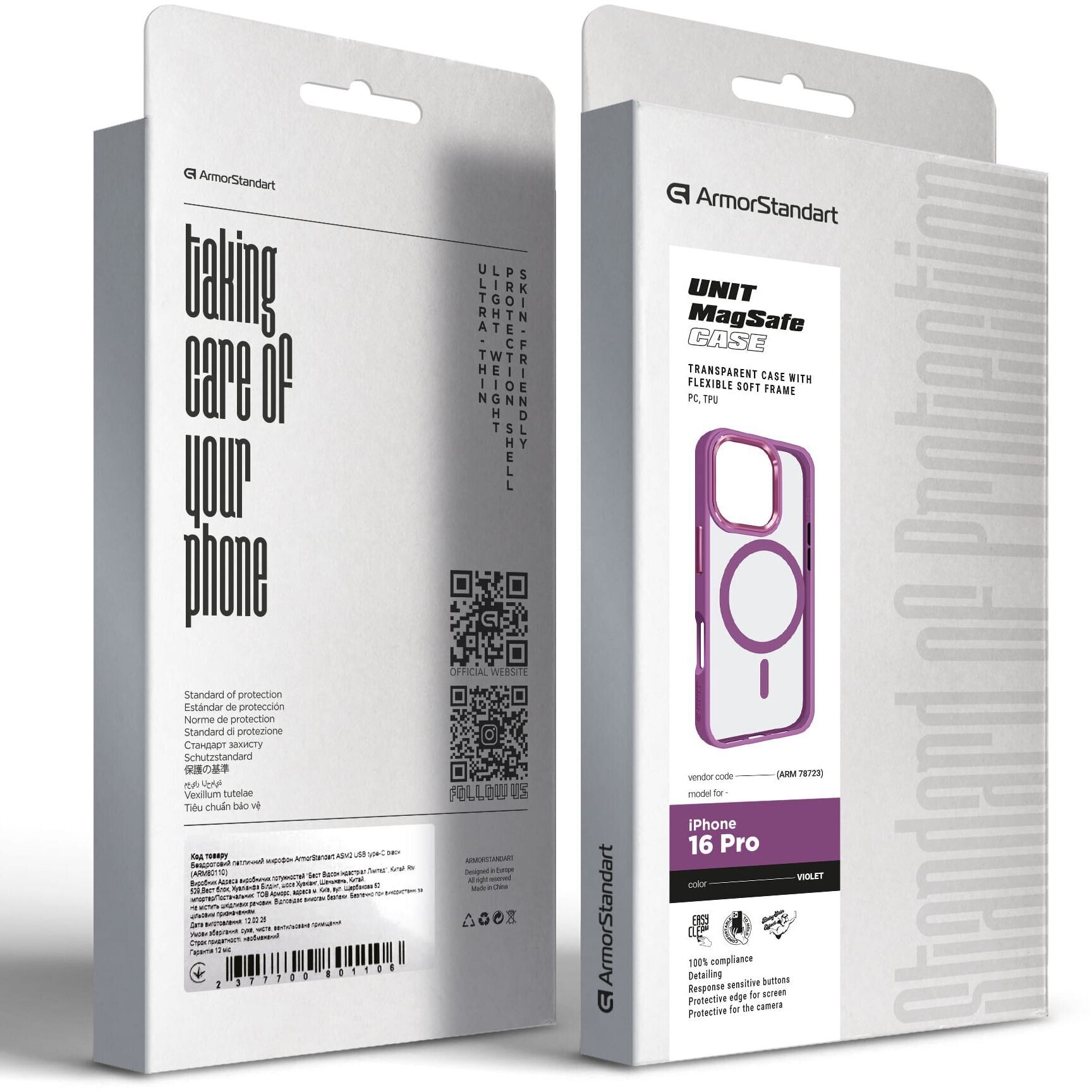 Захисний чохол ArmorStandart Unit MagSafe для Apple iPhone 16 Pro поєднує елегантність та захист. З його прозорою задньою стінкою ви зможете насолоджуватись оригінальним дизайном вашого пристрою. Рамка чохла, виконана в яскравих кольорах, додає родзинку, підкреслюючи стиль та індивідуальність. Виготовлений із міцної комбінації пластику та силікону, цей чохол гарантує довговічність та надійний захист вашого пристрою від пошкоджень. Рамка навколо камери забезпечує додатковий захист об'єктивів. Завдяки вбудованій функції MagSafe, чохол ідеально підходить для використання із сумісними аксесуарами, забезпечуючи магнітне прилягання та точне вирівнювання.