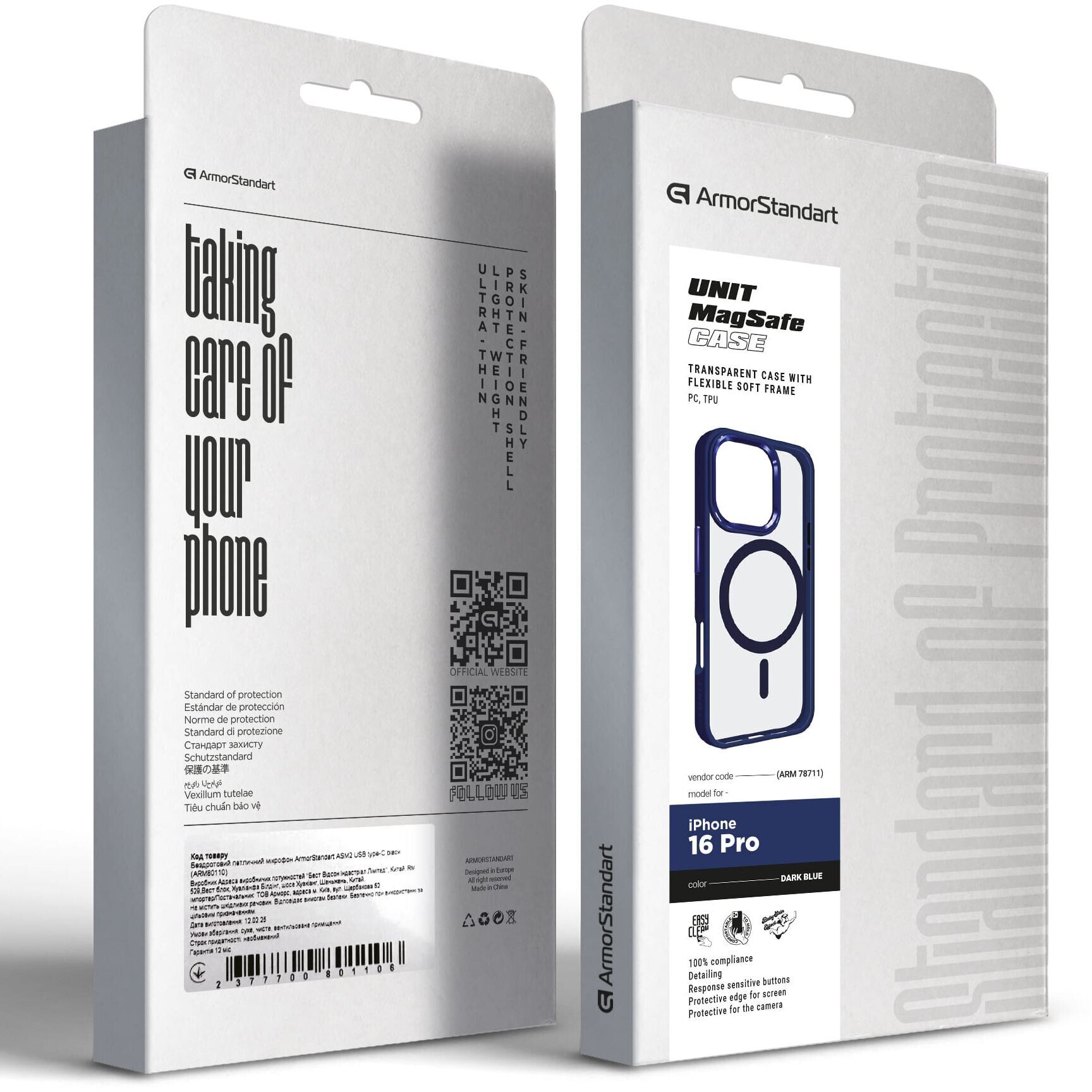 Захисний чохол ArmorStandart Unit MagSafe для Apple iPhone 16 Pro поєднує елегантність та захист. З його прозорою задньою стінкою ви зможете насолоджуватись оригінальним дизайном вашого пристрою. Рамка чохла, виконана в яскравих кольорах, додає родзинку, підкреслюючи стиль та індивідуальність. Виготовлений із міцної комбінації пластику та силікону, цей чохол гарантує довговічність та надійний захист вашого пристрою від пошкоджень. Рамка навколо камери забезпечує додатковий захист об'єктивів. Завдяки вбудованій функції MagSafe, чохол ідеально підходить для використання із сумісними аксесуарами, забезпечуючи магнітне прилягання та точне вирівнювання.