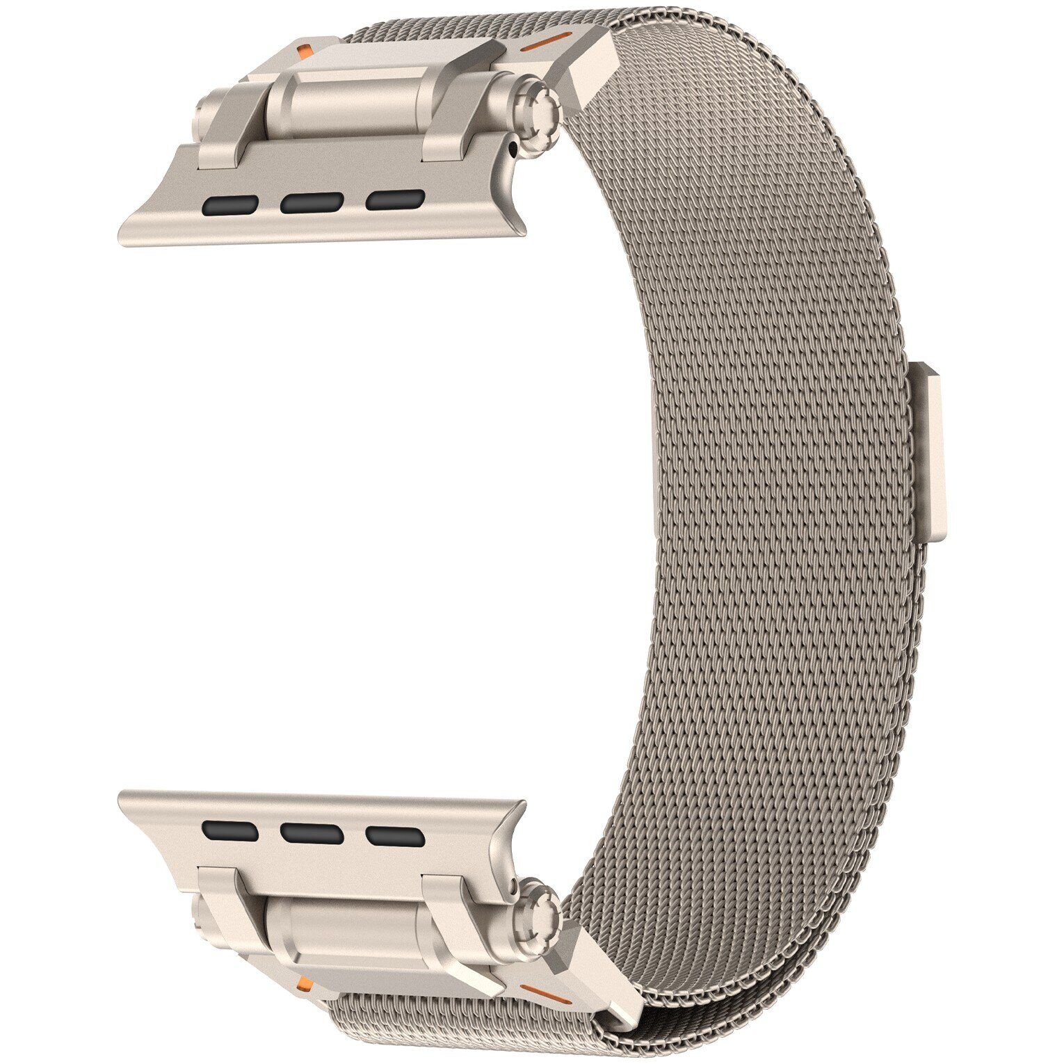 Ремінець Deexe Milanese Design розроблений спеціально для розумних годинників Apple Watch 46 / 45 / 44 / SE 44 / 42 (Series 1-3) / Ultra / Ultra 2 / Ultra 3, забезпечуючи комфортну посадку і надійну фіксацію на зап'ясті. Завдяки магнітній застібці ви можете швидко підігнати довжину під свій розмір, що робить аксесуар зручним у повсякденному використанні. Універсальний розмір підходить для зап'ясть різного розміру, що робить ремінець придатним для більшості користувачів. Модель виготовлено з неіржавкої сталі високої якості, стійкої до корозії та зносу, а плетена структура забезпечує циркуляцію повітря, запобігаючи перегріванню шкіри та даючи змогу носити аксесуар протягом усього дня. Елегантний міланський дизайн робить ремінець актуальним як для ділового одягу, так і для повсякденних виходів. Аксесуар легко встановлюється і знімається, що зручно при заміні старого ремінця.
