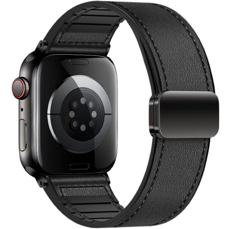 Ремінець Hoco WA34 для Apple Watch 46 / 45 / 44 / SE 44 / Ultra / Ultra 2 / Ultra 3 - це зручний і практичний аксесуар, що підходить для широкої лінійки моделей розумних годинників Apple. Він поєднує в собі надійність, стиль і продуманий функціонал. Верхня частина виконана з синтетичної шкіри, яка надає ремінцю естетичного зовнішнього вигляду та імітує натуральну текстуру. Основа виконана з м'якого силікону, що забезпечує комфортне носіння навіть при тривалому використанні. Завдяки вбудованому магнітному замку можна точно налаштувати обхват зап'ястя без зайвих зусиль. Ремінець легко встановлюється і надійно фіксується, а використання неіржавкої сталі в сполучних елементах збільшує термін служби виробу. Дизайн продуманий з урахуванням універсальності, що дає змогу використовувати ремінець із більшістю моделей Apple Watch, включно з ультрасучасними версіями Ultra і Ultra 2.