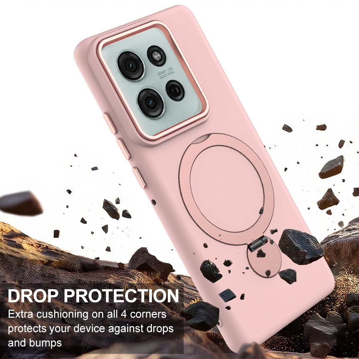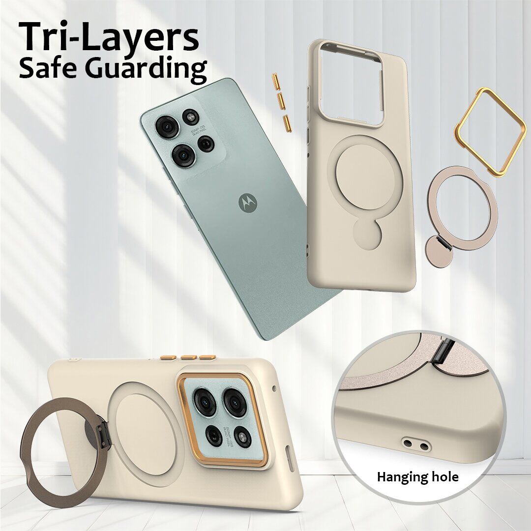 Захисний чохол Reframe Draco Case розроблений з урахуванням геометрії корпусу Motorola Moto G75 та особливостей його експлуатації. Основа аксесуара виконана з комбінації TPU і PC, що утворює багатошарову конструкцію, яка сприяє більш рівномірному розподілу навантаження при ударах і знижує ризик пошкоджень при падіннях. Внутрішня поверхня доповнена м'якою мікрофіброю, призначеною для зменшення ймовірності появи подряпин, потертостей і слідів тертя на задній панелі пристрою. Посилені кутові елементи конструкції допомагають пом'якшувати вплив при контактах з твердими поверхнями. На задній панелі передбачено металеве кільце, яке може використовуватися як тримач або підставка для розміщення смартфона у вертикальному та горизонтальному положенні. Підняті краї навколо екрану та блоку камер зменшують ймовірність пошкоджень при розміщенні пристрою на столі або іншій рівній поверхні. Вбудована магнітна система забезпечує сумісність з магнітними зарядними пристроями та автомобільними тримачами без необхідності знімати аксесуар.