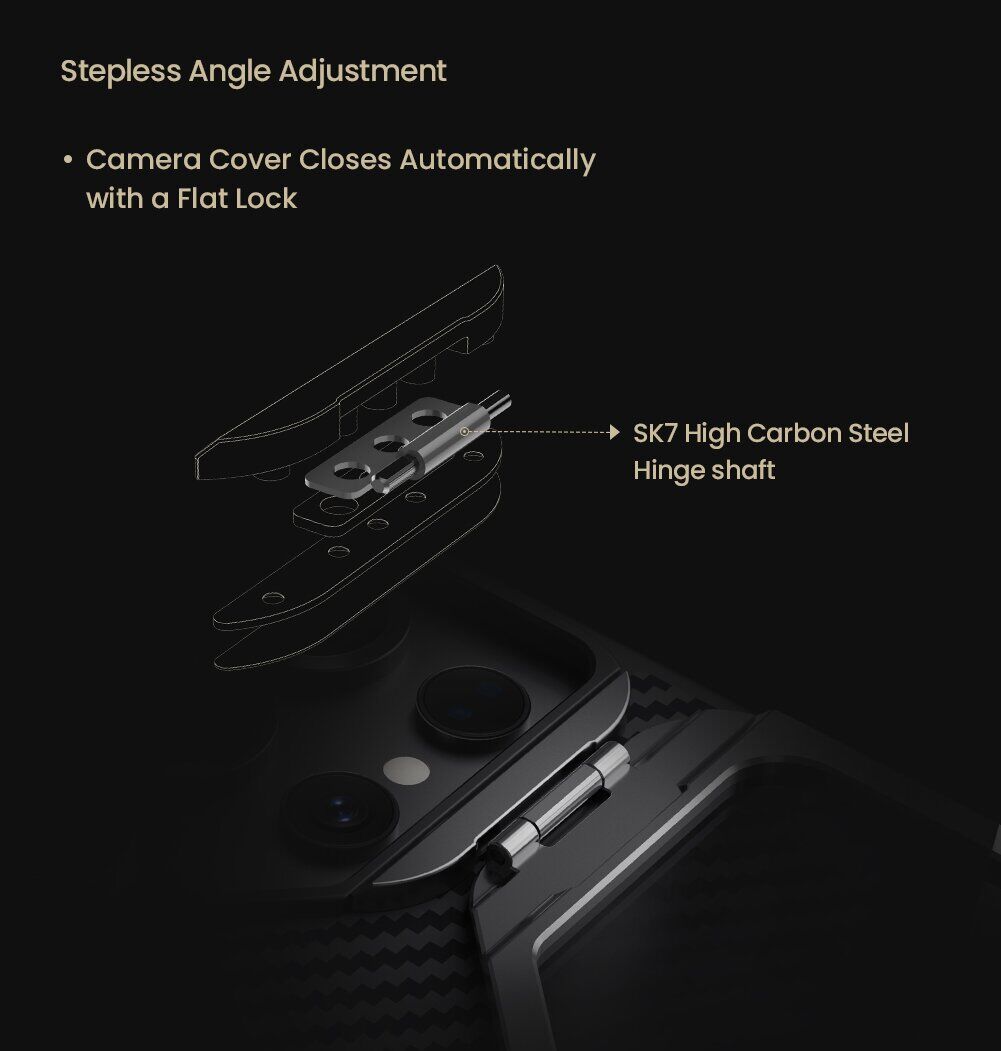 • Прозора накладка навколо блоку камер об'єднує дві функції, закриваючи об'єктиви від впливу і перетворюючись в зручну підставку для перегляду контенту;