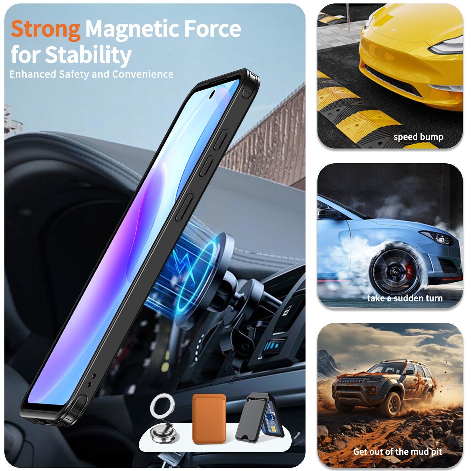 Захисний чохол Reframe Grip MagSafe для Samsung Galaxy A56 (A566) розроблений для щоденного використання смартфона з урахуванням особливостей його конструкції. Модель виготовлена з комбінації TPU і PC, що дозволяє зберегти баланс між гнучкістю і жорсткістю корпусу, а посилені кути допомагають знизити вплив ударів при випадкових падіннях і повсякденних навантаженнях. Вбудоване магнітне кільце забезпечує сумісність із зарядними пристроями та аксесуарами стандарту MagSafe без необхідності знімати аксесуар. В області камери передбачений піднятий бортик висотою близько 1,5 мм, який знижує контакт лінз з поверхнями при розміщенні смартфона. Металеве кільце з можливістю обертання на 360° виконує функцію підставки та дозволяє вибирати зручний кут огляду. Конструкція точно повторює форму корпусу пристрою та оснащена акуратними вирізами для роз'ємів і динаміків, а кнопки управління закриті накладками, які зберігають звичну чуйність при натисканні.