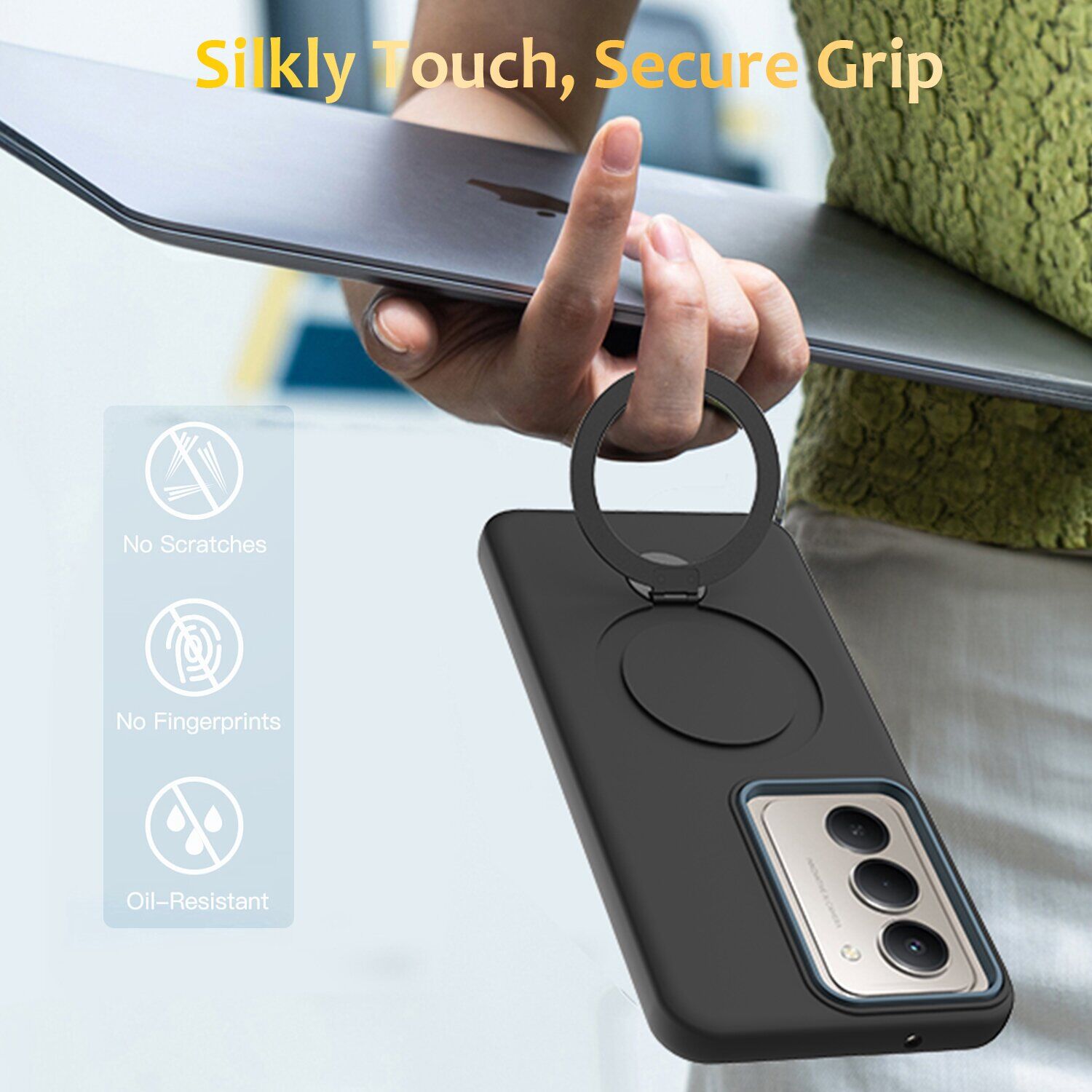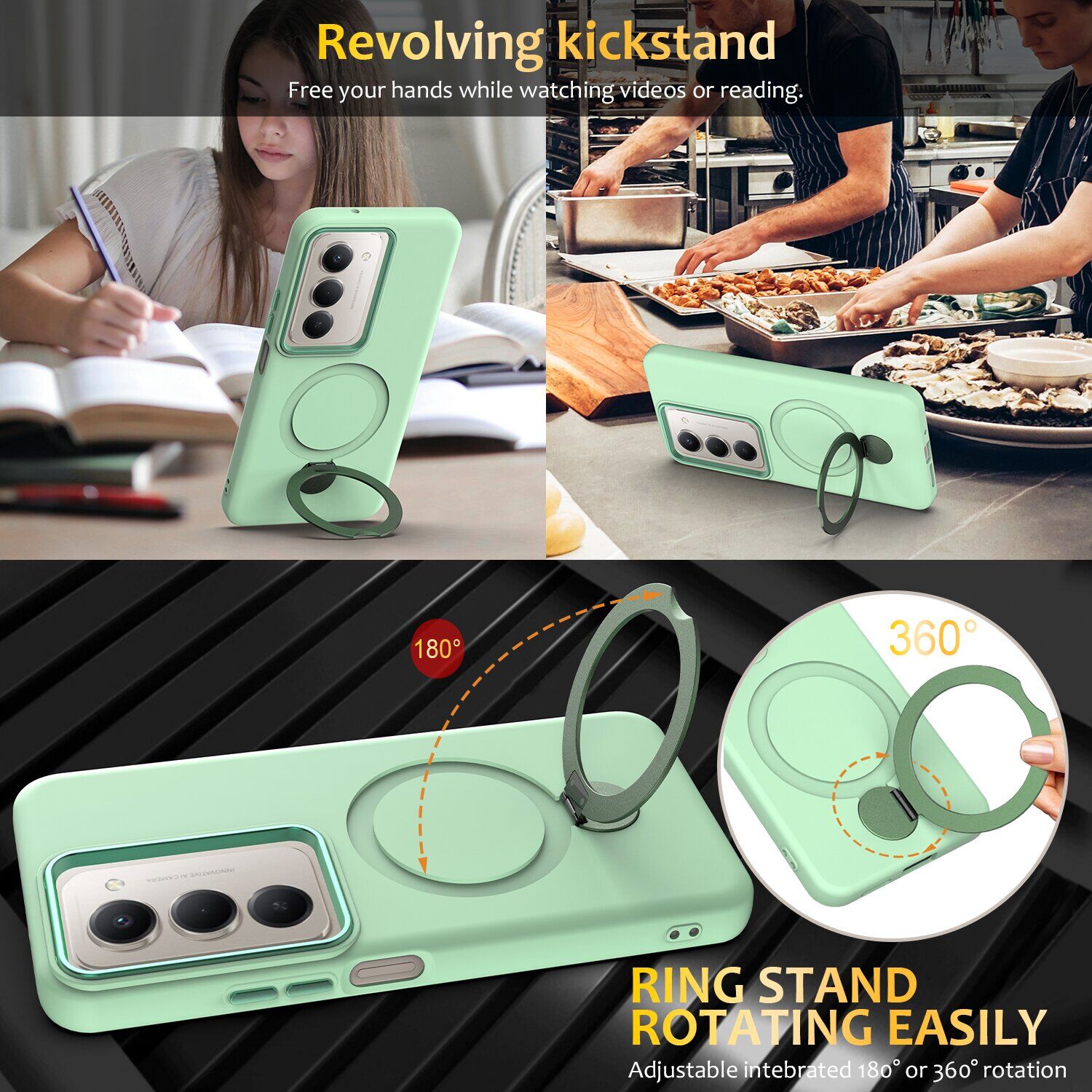 • Металеве кільце з функцією підставки підтримує обертання на 180° і 360°, дозволяючи зручно використовувати смартфон для перегляду відео, читання або відеозв'язку;