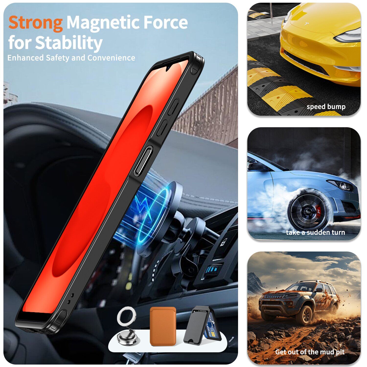 Захисний чохол Reframe Grip MagSafe для Samsung Galaxy A26 (A266) розроблений для щоденного використання смартфона з урахуванням особливостей його конструкції. Модель виготовлена з комбінації TPU і PC, що дозволяє зберегти баланс між гнучкістю і жорсткістю корпусу, а посилені кути допомагають знизити вплив ударів при випадкових падіннях і повсякденних навантаженнях. Вбудоване магнітне кільце забезпечує сумісність із зарядними пристроями та аксесуарами стандарту MagSafe без необхідності знімати аксесуар. В області камери передбачений піднятий бортик висотою близько 1,5 мм, який знижує контакт лінз з поверхнями при розміщенні смартфона. Металеве кільце з можливістю обертання на 360° виконує функцію підставки та дозволяє вибирати зручний кут огляду. Конструкція точно повторює форму корпусу пристрою та оснащена акуратними вирізами для роз'ємів і динаміків, а кнопки управління закриті накладками, які зберігають звичну чуйність при натисканні.