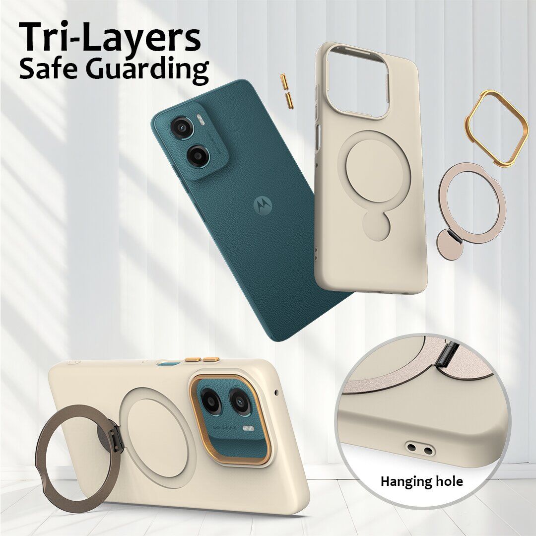 Захисний чохол Reframe Draco Case розроблений з урахуванням геометрії корпусу Motorola Moto G05 / Moto E15 та особливостей його експлуатації. Основа аксесуара виконана з комбінації TPU і PC, що утворює багатошарову конструкцію, яка сприяє більш рівномірному розподілу навантаження при ударах і знижує ризик пошкоджень при падіннях. Внутрішня поверхня доповнена м'якою мікрофіброю, призначеною для зменшення ймовірності появи подряпин, потертостей і слідів тертя на задній панелі пристрою. Посилені кутові елементи конструкції допомагають пом'якшувати вплив при контактах з твердими поверхнями. На задній панелі передбачено металеве кільце, яке може використовуватися як тримач або підставка для розміщення смартфона у вертикальному та горизонтальному положенні. Підняті краї навколо екрану та блоку камер зменшують ймовірність пошкоджень при розміщенні пристрою на столі або іншій рівній поверхні. Вбудована магнітна система забезпечує сумісність з магнітними зарядними пристроями та автомобільними тримачами без необхідності знімати аксесуар.