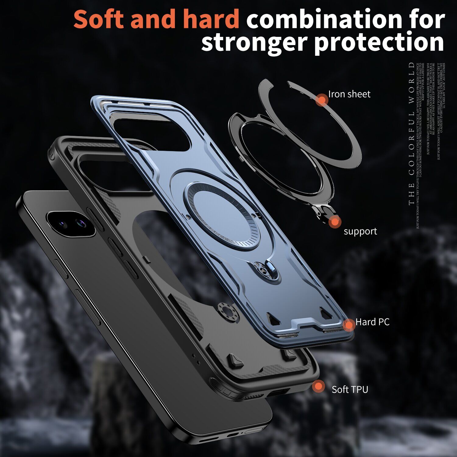 Lander Armor від UniCase – це практичний та функціональний чохол для Google Pixel 9a з підвищеними захисними характеристиками. В його основі лежить комбінація із міцного полікарбонатного зовнішнього панцира та еластичної внутрішньої частини. Таке поєднання матеріалів різної жорсткості підвищує як зносостійкість конструкції, так і її амортизаційні характеристики, дозволяючи краще справлятися з ударами або падіннями. На кутах чохла передбачено спеціальні посилення, щоб додатково уберегти від найбільш небезпечних ушкоджень. Для всіх портів і камери виробником передбачені необхідні вирізи, для клавіш – м'які дублікатори, тому користуватися ними буде так само зручно, як і раніше. У надітому стані рамка чохла трохи виступає над рівнем фронтальної панелі, дозволяючи класти смартфон екраном вниз на будь-яку рівну поверхню без небезпеки отримати подряпини. На спинці передбачено спеціальне кільце-підставка з металевими вставками, яке не тільки дозволить насолоджуватися контентом з екрану смартфона, зручно розмістивши його на столі, а ще й приєднувати до нього magsafe-сумісні бездротові ЗУ.