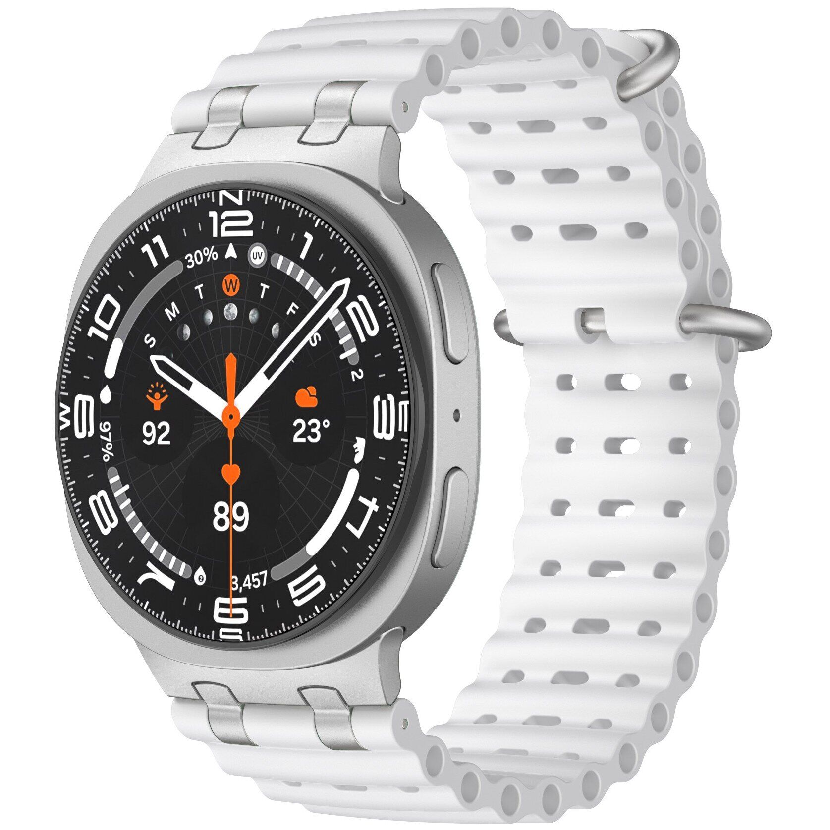 Ремінець Reframe Starlab Strap для Samsung Galaxy Watch 8 (40/44 мм) і Watch 8 Classic поєднує в собі м'якість, гнучкість і надійність, забезпечуючи зручне використання кожен день. Виготовлений з преміального силікону, він стійкий до зносу і зберігає свої властивості навіть при активній експлуатації. Застібка-пряжка з нержавіючої сталі міцно фіксує ремінець на зап'ясті, запобігаючи випадковому розстібанню під час руху. Перфорована конструкція сприяє вільній циркуляції повітря, завдяки чому шкіра залишається сухою, а носіння – комфортним навіть під час тренувань або в жарку погоду. Численні отвори в ремінці дозволяють легко регулювати довжину, підлаштовуючи його під різні розміри зап'ястя. Матеріал стійкий до впливу вологи та легко очищається, що робить аксесуар придатним як для повсякденного носіння, так і для занять спортом, прогулянок на свіжому повітрі або відпочинку біля води.