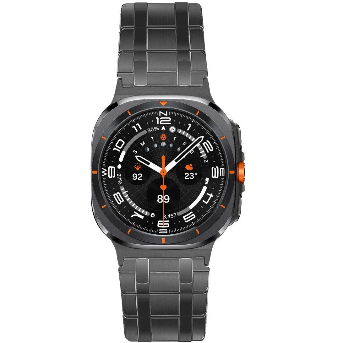 Ремінець Reframe Vega для Samsung Galaxy Watch 8 (40/44 мм) / 8 Classic виготовлений з нержавіючої сталі та поєднує акуратний зовнішній вигляд з продуманою конструкцією. Дворядне металеве плетіння формує збалансовану геометрію ремінця та сприяє рівномірному розподілу ваги на зап'ясті. Полірована поверхня сталі стійка до появи дрібних слідів експлуатації та довше зберігає охайний зовнішній вигляд. Магнітна система фіксації спрощує процес надягання і зняття ремінця, дозволяючи обходитися без класичних застібок. Регулювання довжини виконується плавно, що полегшує підбір відповідної посадки під різні параметри зап'ястя. Конструкція не обтяжує корпус годинника і не порушує загальний баланс пристрою. Ремінець зберігає вільний доступ до кнопок і елементів управління, не перекриваючи функціональні зони корпусу.