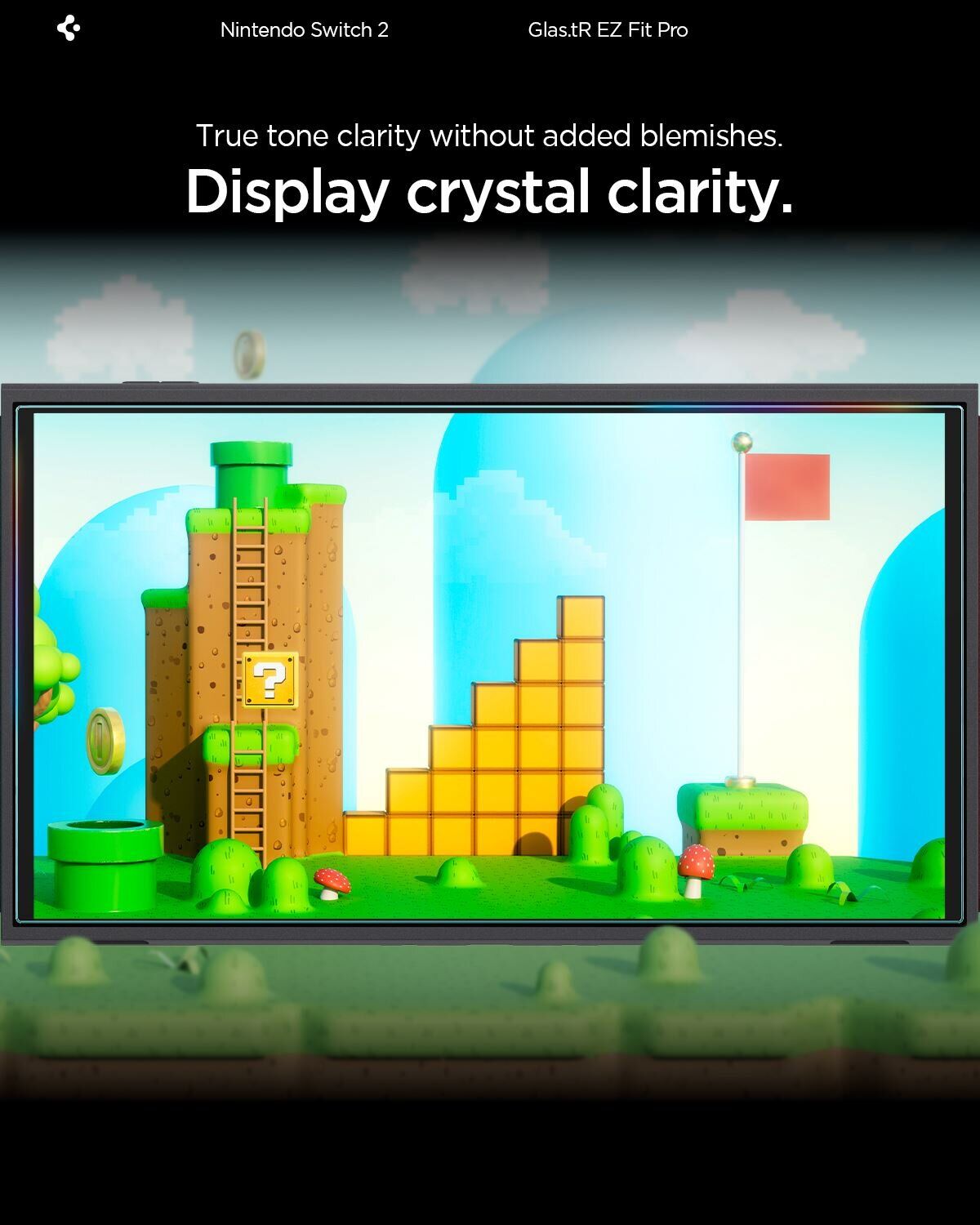 Комплект захисних стекол Spigen Glas.tR EZ Fit Pro (FC) для Nintendo Switch 2 — це високоякісне рішення для надійного захисту екрану консолі з максимально простим процесом встановлення та бездоганною точністю прилягання. Загартоване скло з твердістю 9H ефективно захищає дисплей від подряпин, потертостей і повсякденних пошкоджень, зберігаючи його в ідеальному стані навіть при активному використанні. Багатошарова структура включає клейовий шар, силіконову основу та захисні покриття, забезпечуючи міцність і довговічність. Технологія EZ Fit Pro значно спрощує встановлення: скло встановлюється за допомогою спеціальної рамки, яка гарантує точне вирівнювання без бульбашок і перекосів. Процес займає мінімум часу і не вимагає додаткових навичок. Повна сумісність з Nintendo Switch 2 забезпечує ідеальне прилягання без впливу на використання пристрою — скло не заважає док-станції та не впливає на сенсорне керування.