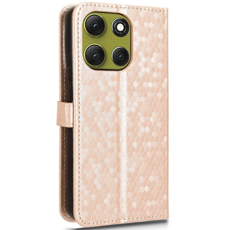 Захисний чохол Deexe Pegasus Cover — не просто аксесуар, а вираження вашого стилю, функціональності та турботи про Motorola Moto G86 Power. Виготовлений з якісної PU шкіри, він не тільки приємний на дотик, а й довговічний і стійкий до подряпин. М'який TPU-тримач всередині забезпечує ідеальне прилягання до корпусу смартфона, а також допомагає пом'якшувати удар у випадку падіння на підлогу. Зовнішня поверхня обкладинки прикрашена стильним візерунковим тисненням у вигляді невеликих шестикутних сот. На внутрішній поверхні передбачені мініатюрні відсіки для карток і велика кишеня для купюр або ваших дрібниць. Як бонус, конструкція чохла дозволяє скласти його в підставку для зручного перегляду відео, а комплект поставки доповнений ремінцем для носіння його на зап'ясті.