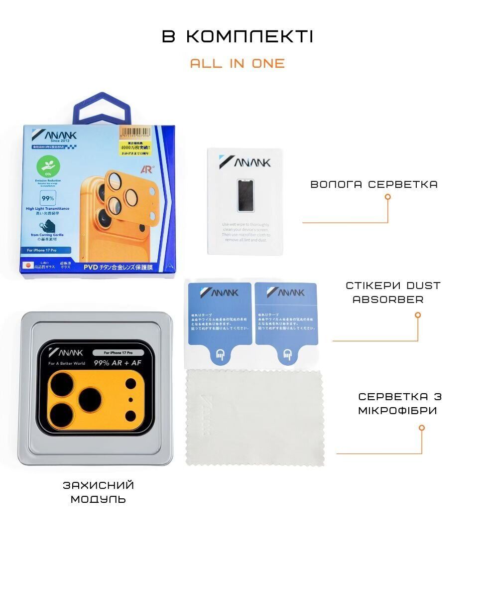 Захисне скло Anank All-in-One Camera для iPhone 17 Pro Max - Cosmic Orange