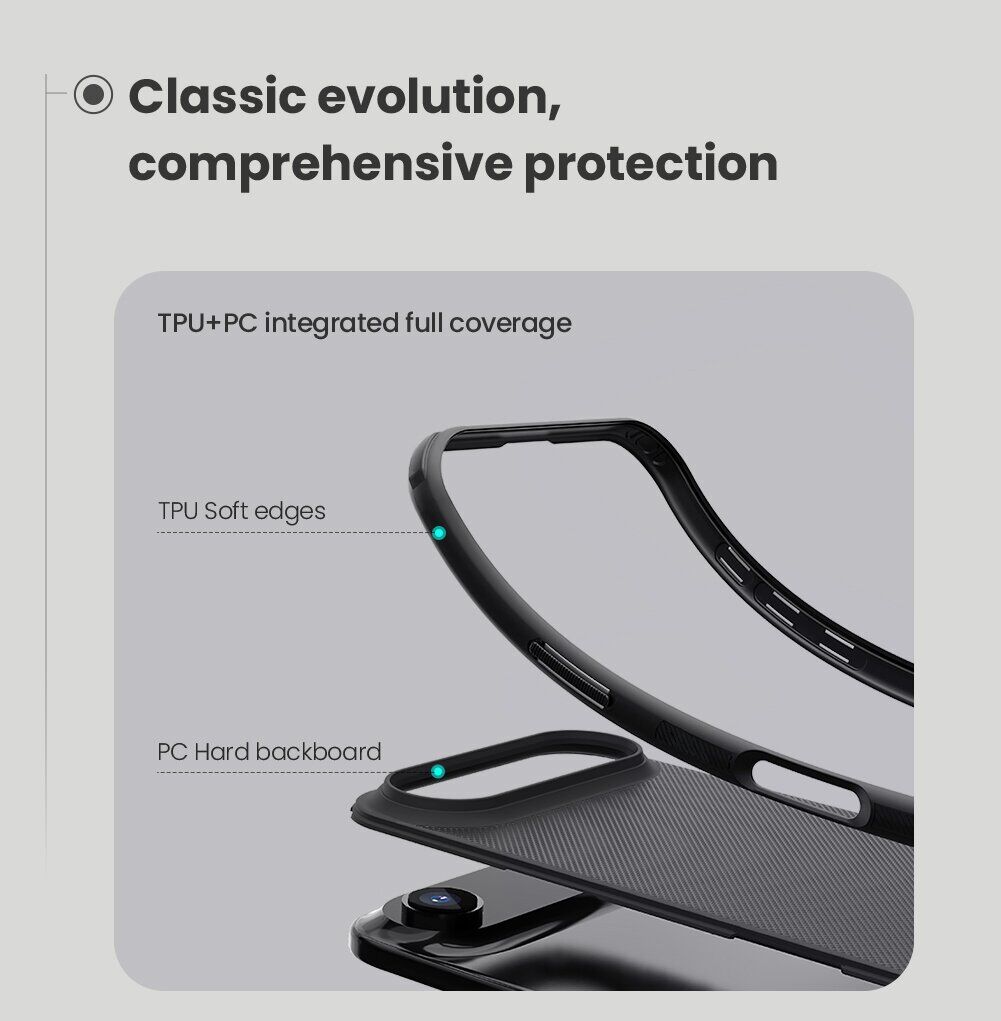 Чохол NILLKIN Frosted Shield Pro для Apple iPhone Air поєднує елегантність і захист, забезпечуючи надійне запобігання подряпинам, відколам і тріщинам, завдяки унікальній подвійній конструкції. Жорсткий пластиковий корпус чохла слугує основою захисту, а м'який силіконовий край додає додаткову амортизацію під час падінь, ефективно розсіюючи енергію удару. Конструкція чохла містить точні вирізи для всіх функціональних елементів пристрою, включно з портами та камерою, а також спеціальні м'які кришки для клавіш, які зберігають їхню чутливість і захищають від вологи та бруду. Продуманий дизайн передбачає край, що виступає навколо екрана, який захищає лицьову панель під час контакту з поверхнями, даючи змогу безпечно розміщувати смартфон екраном донизу. Це рішення гарантує не тільки захист, а й зберігає привабливий зовнішній вигляд пристрою.
