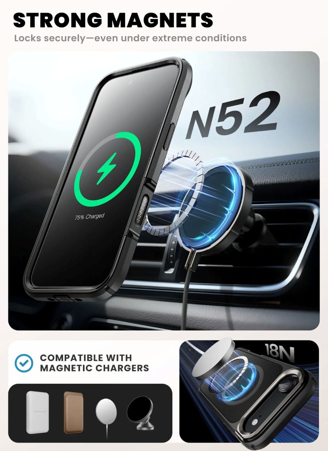• Вбудовані магніти N52 забезпечують надійне зчеплення з аксесуарами MagSafe і швидку фіксацію пристрою.