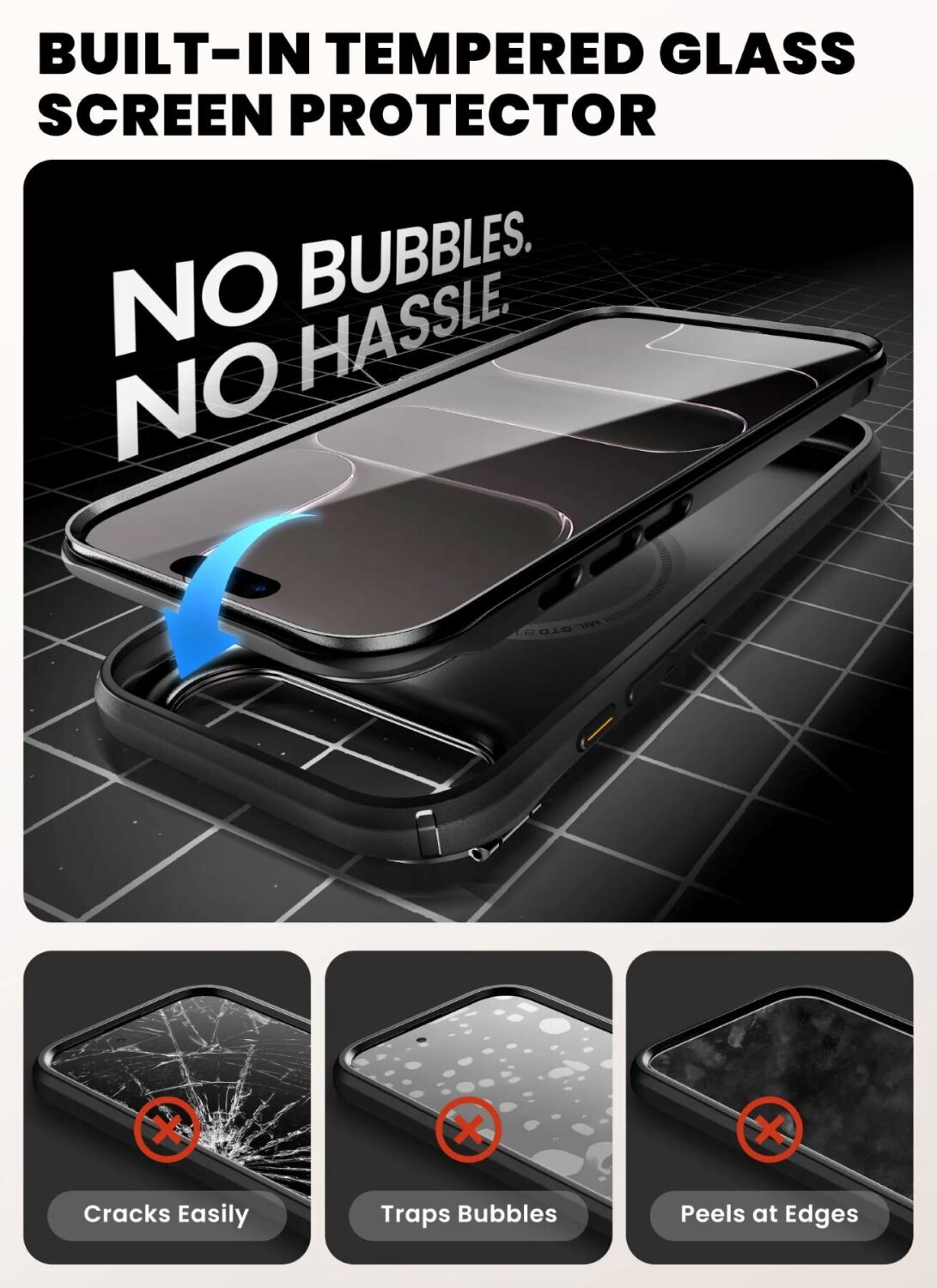 Захисний чохол i-Blason Ares Flip by Supcase для Apple iPhone Air — міцний корпус із сучасним дизайном, який забезпечує надійний захист пристрою від падінь, ударів і подряпин. Він виготовлений із міцного поєднання полікарбонату та термопластичного поліуретану, що робить його стійким до пошкоджень і зносу. Чохол точно повторює форму смартфона, забезпечуючи доступ до всіх роз'ємів, камер і кнопок. Вбудоване скло 9H захищає екран від тріщин і подряпин, зберігаючи чутливість сенсора. Завдяки текстурованій поверхні корпус зручно тримати в руці, а вбудовані магніти сумісні з системою MagSafe і аксесуарами для швидкої зарядки.
