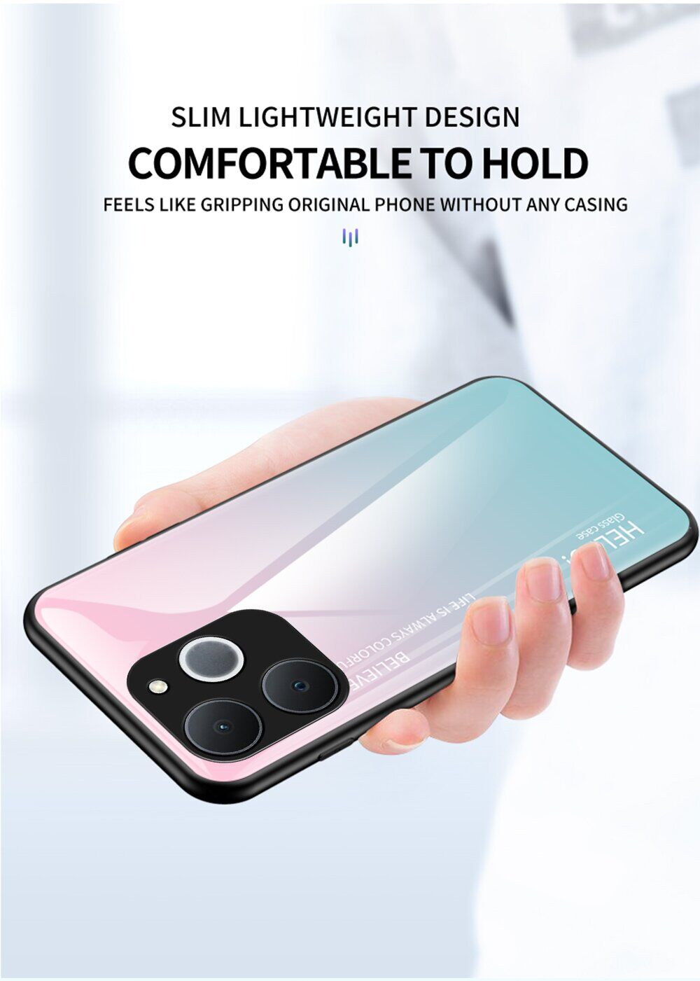 Чохол Deexe Gradient Color – це відмінне поєднання сучасного стилю і високих захисних характеристик, що разом забезпечують безпеку поверхонь Realme/Note 70 і відмінний зовнішній вигляд. В його основі лежить трискладове компонування, що включає в себе пластикову основу, еластичний силіконовий бампер по периметру і загартоване захисне скло з візерунковим елементом. Поєднання матеріалів різної жорсткості забезпечить кращу стійкість до зношування, а також більш високі амортизаційні якості аксесуара, дозволяючи краще пом'якшувати удар. Завдяки невеликій товщині і вазі, чохол мінімально потовщує та обтяжує смартфон, а наявність необхідних прорізів для роз'ємів і м'яких дублікаторів для клавіш дозволить анітрохи не знижувати зручність його щоденного використання.
