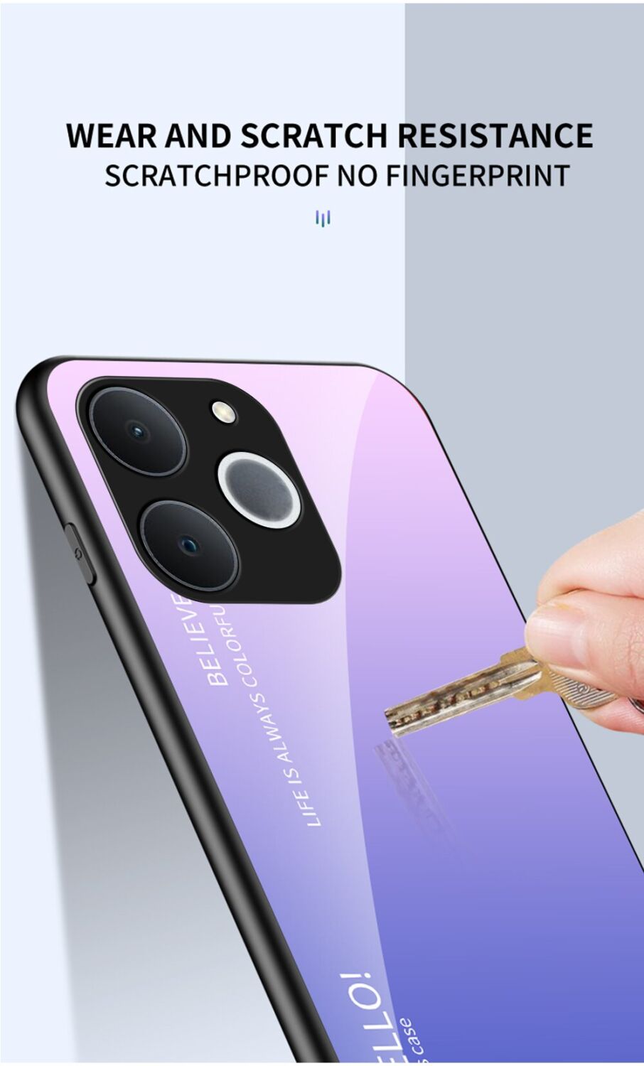 Чохол Deexe Gradient Color – це відмінне поєднання сучасного стилю і високих захисних характеристик, що разом забезпечують безпеку поверхонь Realme/Note 70 і відмінний зовнішній вигляд. В його основі лежить трискладове компонування, що включає в себе пластикову основу, еластичний силіконовий бампер по периметру і загартоване захисне скло з візерунковим елементом. Поєднання матеріалів різної жорсткості забезпечить кращу стійкість до зношування, а також більш високі амортизаційні якості аксесуара, дозволяючи краще пом'якшувати удар. Завдяки невеликій товщині і вазі, чохол мінімально потовщує та обтяжує смартфон, а наявність необхідних прорізів для роз'ємів і м'яких дублікаторів для клавіш дозволить анітрохи не знижувати зручність його щоденного використання.