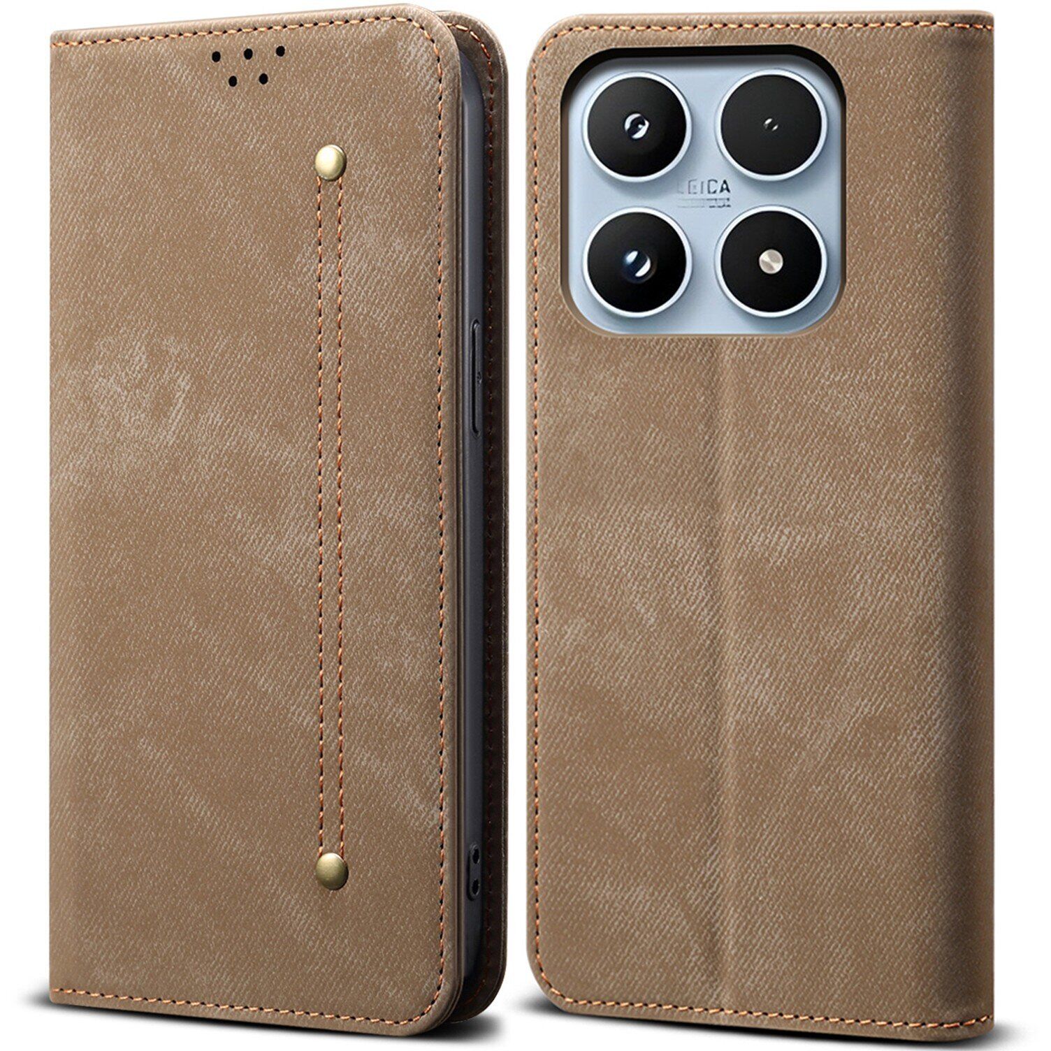 Чохол-книжка з кишеньками UniCase Jeans Wallet для Xiaomi 17 - Khaki