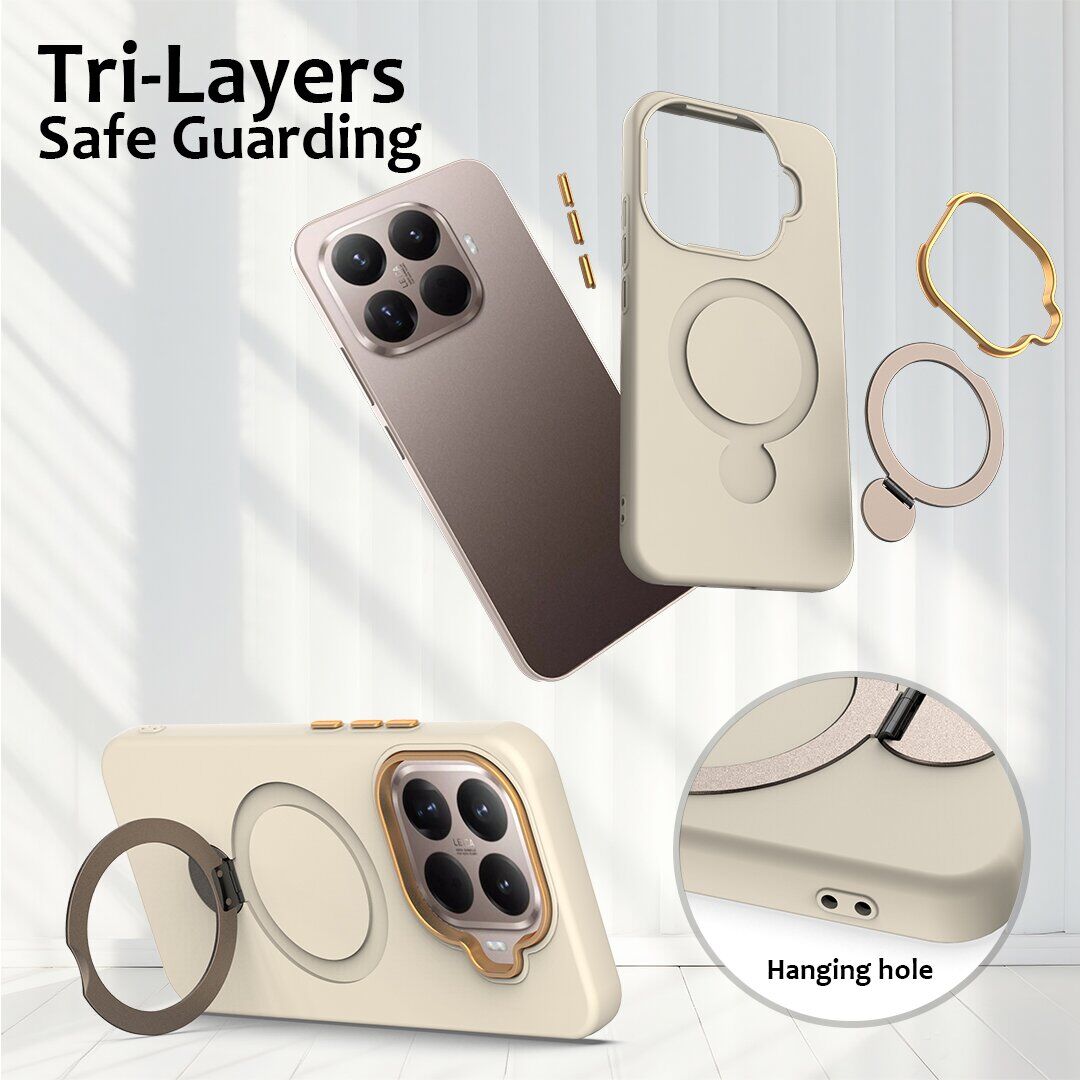 Захисний чохол Reframe Draco Case розроблений з урахуванням геометрії корпусу Xiaomi 15T Pro та особливостей його експлуатації. Основа аксесуара виконана з комбінації TPU і PC, що утворює багатошарову конструкцію, яка сприяє більш рівномірному розподілу навантаження при ударах і знижує ризик пошкоджень при падіннях. Внутрішня поверхня доповнена м'якою мікрофіброю, призначеною для зменшення ймовірності появи подряпин, потертостей і слідів тертя на задній панелі пристрою. Посилені кутові елементи конструкції допомагають пом'якшувати вплив при контактах з твердими поверхнями. На задній панелі передбачено металеве кільце, яке може використовуватися як тримач або підставка для розміщення смартфона у вертикальному та горизонтальному положенні. Підняті краї навколо екрану та блоку камер зменшують ймовірність пошкоджень при розміщенні пристрою на столі або іншій рівній поверхні. Вбудована магнітна система забезпечує сумісність з магнітними зарядними пристроями та автомобільними тримачами без необхідності знімати аксесуар.