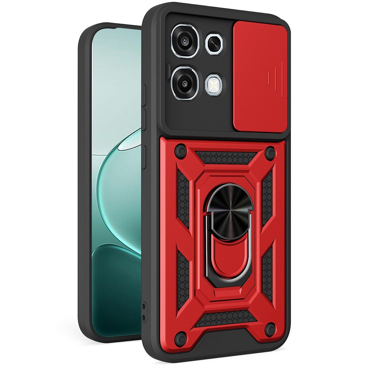 Deexe Armor Shield – це ультрасучасний захисний чохол для OPPO A6 Pro, що володіє винятковою функціональністю. Він складається з комбінації жорсткого полікарбонату та еластичного термополіуретану, що забезпечує подвійний захист: зовнішній жорсткий шар уміло поглинає силу ударів, а внутрішній м'який шар амортизує залишкову енергію, запобігаючи пошкодженню пристрою. Чохол оснащений пилозахисними клавішами і спеціальною шторкою для камери, забезпечуючи комплексний захист кожної деталі вашого смартфона. Металеве кільце на задній панелі не тільки зручне для перенесення і перегляду медіа, а й сумісне з магнітними тримачами, спрощуючи використання в автомобілі.