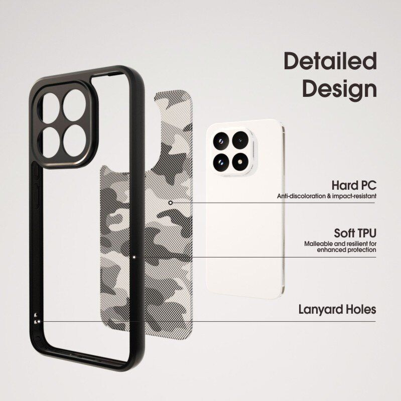 IBMRS Military – захисний чохол для Xiaomi Poco F8 Pro, виконаний у форм-факторі "накладка". Завдяки поєднанню високоякісних матеріалів, таких як м'який TPU та жорсткий полікарбонат, цей чохол забезпечує чудовий захист від подряпин, ударів та інших пошкоджень. Спеціально розроблені за технологією Airbag кути значно підвищують стійкість до випадкових падінь, гарантуючи збереження вашого пристрою у будь-яких ситуаціях. Ергономічний дизайн йде пліч-о-пліч з функціональністю, надаючи повний доступ до всіх функціональних елементів, при цьому не обтяжуючи телефон. Виділяючись своєю якістю та стильним виконанням, чохол IBMRS Military є ідеальним вибором для тих, хто цінує надійність та естетику.