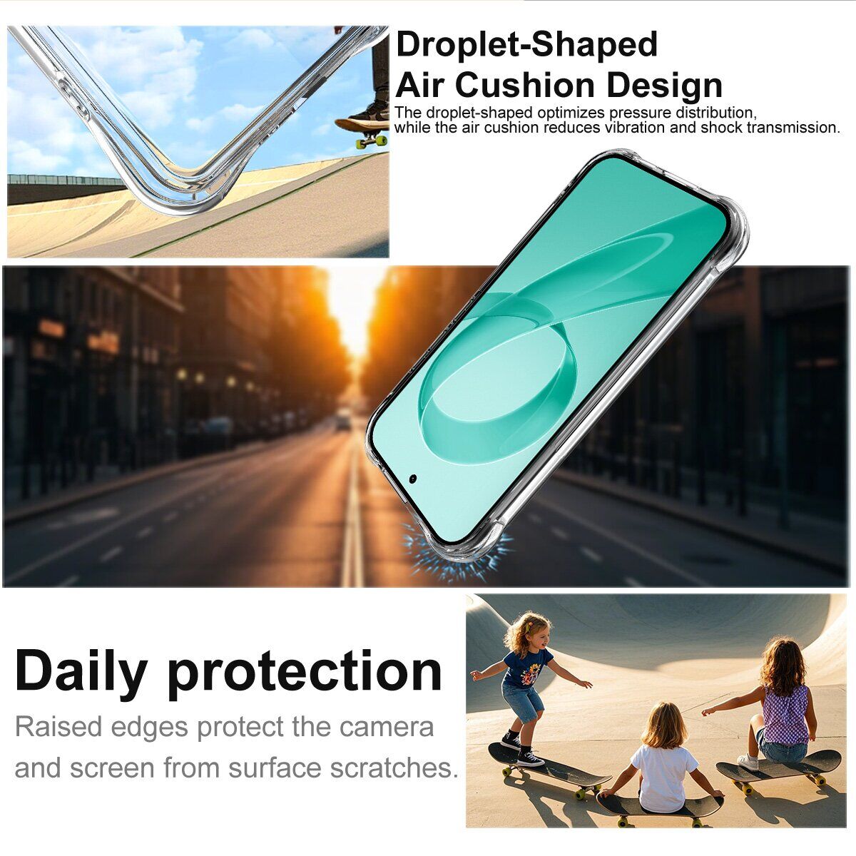 • Пом'якшує силу удару в разі падіння з висоти, мінімізуючи ймовірність утворення тріщин;