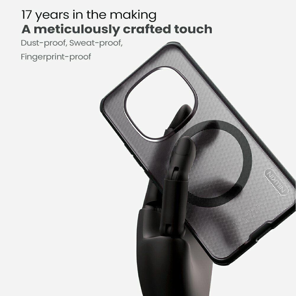 Чохол Super Frosted Shield Pro Magnetic від NILLKIN стане надійним захисним і зручним функціональним доповненням до вашого Xiaomi Redmi Note 15 Pro 5G. Він виконаний з комбінації двох матеріалів різної жорсткості – міцної полікарбонатної основи та еластичного силіконового (TPU) бампера по периметру, що забезпечує відмінну стійкість до механічних впливів при повсякденному використанні, а також допоможе значно краще пом'якшити удар у випадку падіння на підлогу. Напівпрозора поверхня спинки надає аксесуару оригінальний і незабутній зовнішній вигляд, а її спеціальна фактурна поверхня не збирає відбитки пальців і покращує хват в долоні. Також на ребрах передбачені спеціальні насічки, що додатково знижують ймовірність випадкового вислизання смартфона. Для всіх функціональних роз'ємів в конструкції є необхідні вирізи, для клавіш – м'які пилозахисні дублікатори. В надітому стані чохол буде трохи виступати по периметру лицьової панелі, створюючи невеликий захисний бортик, котрий дозволить безпечно класти смартфон екраном вниз. Ще одна перевага чохла – підтримка технології MagSafe завдяки вбудованому магніту в задню панель: в ньому ви не відчуєте жодних проблем з підключенням до сумісних бездротових ЗУ, а зарядка залишиться такою ж ефективною, як і раніше.