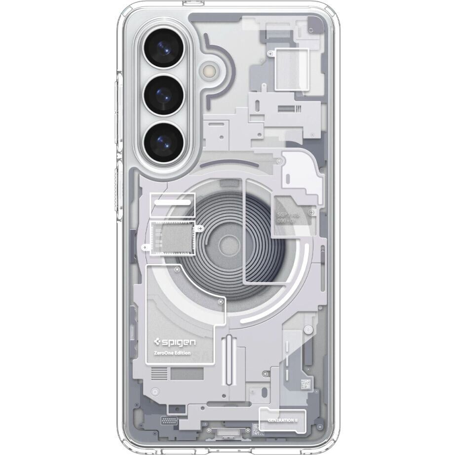Spigen (SGP) Ultra Hybrid Zero One (MagFit) – це винятковий дизайн і якість, розроблений спеціально для Samsung Galaxy S26 (S942). Малюнок на чохлі імітує внутрішні компоненти пристрою, надаючи йому унікальний та інноваційний вигляд. Попри свою тонкість, що додає всього кілька міліметрів до габаритів смартфона, чохол забезпечує оптимальний захист завдяки протиударній технології Air Cushion. Точні вирізи гарантують легкий доступ до функцій пристрою. Використовувані матеріали – силікон (TPU) і полікарбонат (PC) – забезпечують довговічність і захист. Інтегроване магнітне кільце MagFit забезпечує повну сумісність з MagSafe, підтримуючи бездротову зарядку.