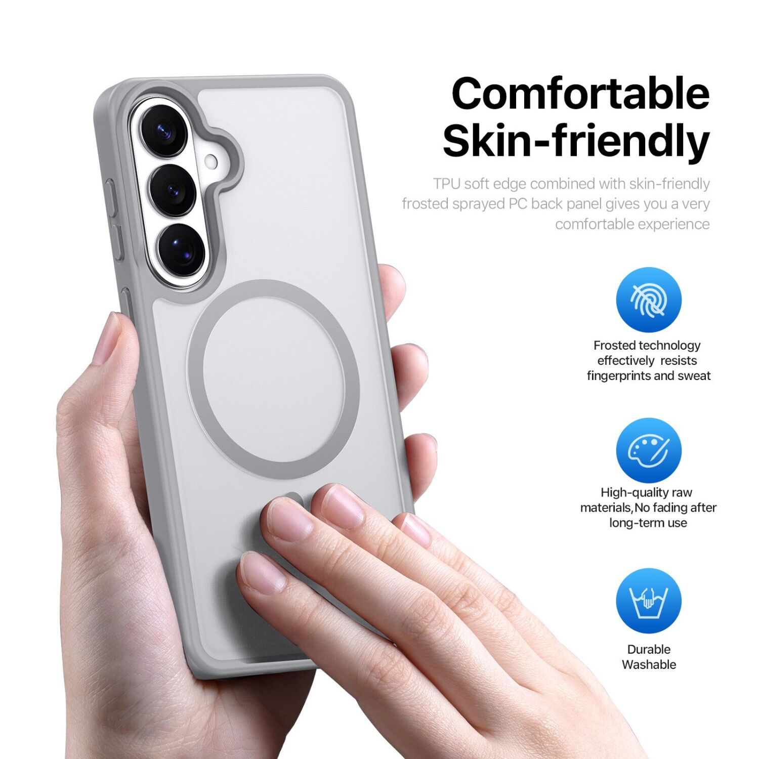 • Фактура поверхні не зберігає на собі відбитки пальців і не ковзає в долонях.