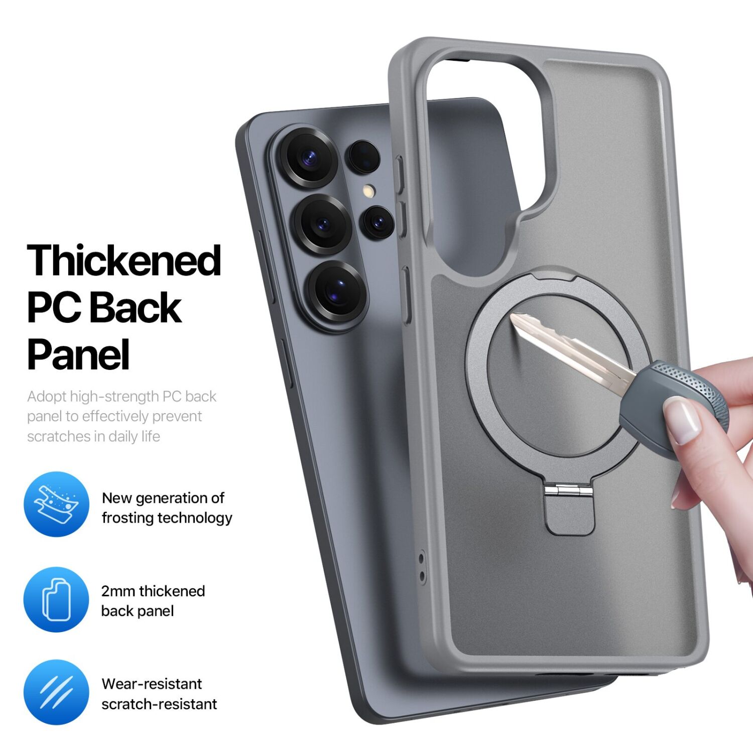 • Матовий полікарбонат у поєднанні з TPU підвищує довговічність конструкції, захищаючи її від подряпин і створюючи комфортні тактильні відчуття;