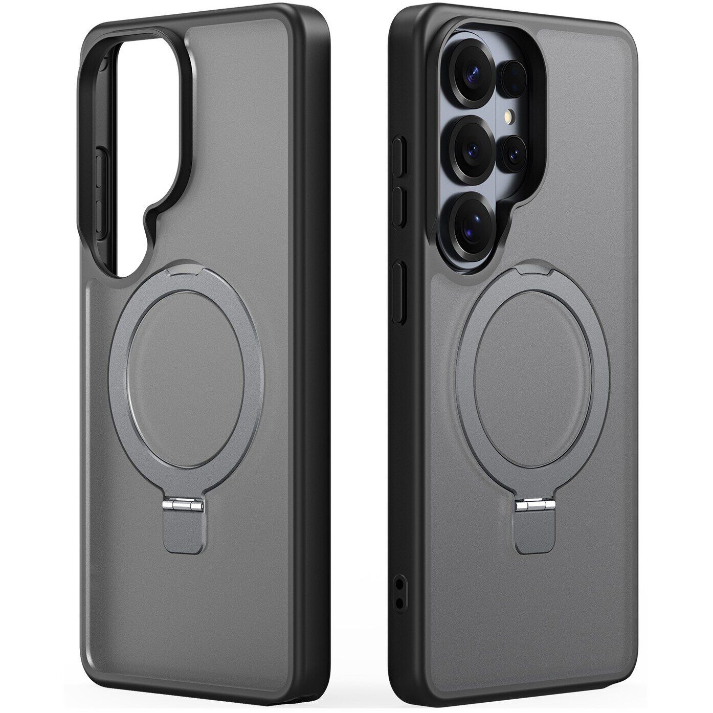 Захисний чохол DUX DUCIS Yind Series Stand для Samsung Galaxy S26 Ultra забезпечує надійний захист і комфортне використання вашого пристрою. Чохол виконаний з комбінованих матеріалів: м'які краї з TPU і задня панель з матового полікарбонату, які гарантують зручний хват і довговічність. Аксесуар сумісний з функцією MagSafe завдяки вбудованим 38 потужним магнітам, що забезпечує стабільне та надійне кріплення під час бездротової зарядки. Для додаткового захисту передбачені потовщена задня панель і амортизуючі кути, які ефективно мінімізують ризик пошкоджень від ударів і падінь. Бортики навколо екрана і камери додатково захищають їх від подряпин і потертостей. Кнопки виконані окремо, що забезпечує їх плавну і точну роботу. Матеріал чохла стійкий до відбитків пальців і слідів від поту, зберігаючи акуратним зовнішній вигляд аксесуара. Зручна магнітна підставка з кутом повороту 360° дає змогу комфортно використовувати пристрій у портретній або альбомній орієнтації для перегляду відео або спілкування.