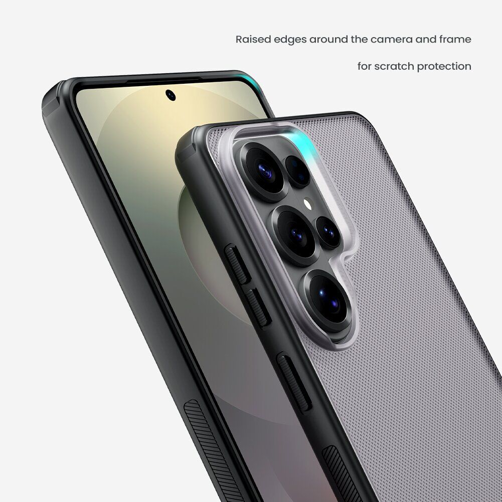 NILLKIN Super Frosted Shield Pro – це аксесуар, розроблений з урахуванням форми та всіх особливостей Samsung Galaxy S26 Ultra. Він виготовлений з комбінації твердого полікарбонату і м'якого TPU, що забезпечує міцність конструкції в повсякденному використанні та амортизацію ударів при випадкових падіннях. Матова напівпрозора поверхня спинки стійка до подряпин і потертостей, не збирає відбитки пальців і легко очищається. Наявність вирізів під всі функціональні отвори та пилозахисних дублікаторів для клавіш дозволить використовувати всі функції смартфона з колишнім рівнем комфорту. Наявність отвору під петлю для шнурка на руку дозволить зручно носити його на зап'ясті або на шиї (шнурок не входить в комплектацію). У надітому стані чохол буде трохи виступати по периметру лицьової панелі, створюючи невеликий захисний бортик, котрий дозволить безпечно класти смартфон екраном вниз.
