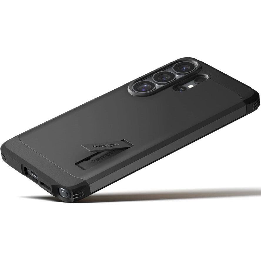 Spigen (SGP) Tough Armor (MagFit) — це ударостійкий чохол преміум-класу для Samsung Galaxy S26 Ultra (S948), здатний гарантувати максимальну безпеку корпусу від бруду і різного роду механічних пошкоджень. В його основі лежить еластична накладка зі щільного термополіуретану (TPU), яка доповнена зверху ударостійким полікарбонатним панциром. Таке компонування дозволяє досягти максимальних амортизаційних характеристик і суттєво пом'якшити навіть найжорсткіші падіння з висоти. У конструкції передбачені всі необхідні вирізи для доступу до апаратних роз'ємів, тоді як кнопки прикриваються м'якими дублікаторами. На спинці можна знайти зручний відкидний упор, що дозволяє перетворити чохол на підставку для перегляду відео або читання з екрана. На окрему увагу заслуговує підтримка технології MagSafe, за допомогою якої можна точно, швидко і безпечно приєднувати бездротові ЗП.