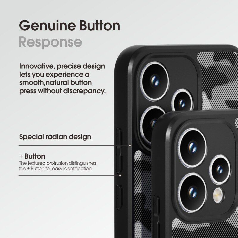 Захисний чохол IBMRS Military для OPPO Reno 15 являє собою високоякісну накладку, розроблену з використанням двох різних матеріалів: м'якого силікону (TPU) і жорсткого полікарбонату. Ця комбінація гарантує чудовий захист від механічних пошкоджень, таких як подряпини, удари та інші види впливу. Унікальна особливість чохла – кути з вбудованою Airbag-технологією, які значно підвищують його стійкість до випадкових падінь. Чохол ідеально збалансований за вагою та розмірами, надає повний доступ до всіх портів і має стильний зовнішній вигляд, який доповнює естетику вашого смартфона.