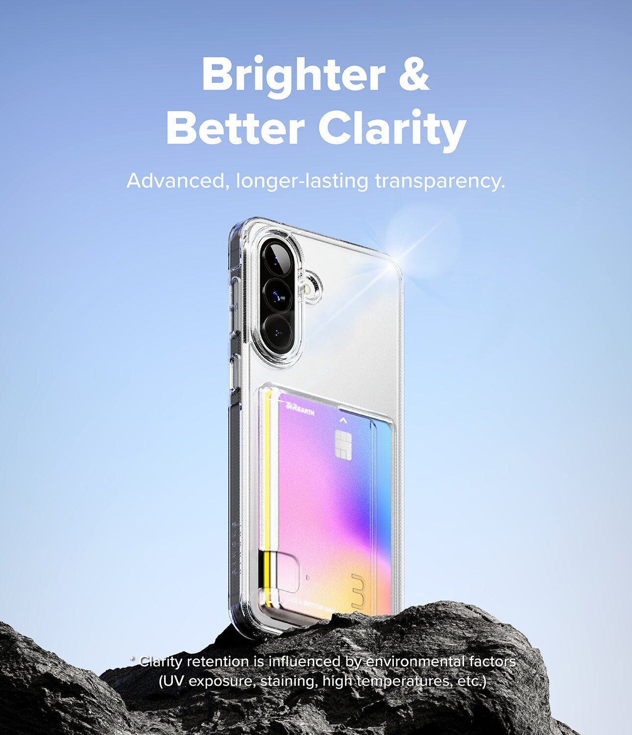 Захисний чохол Ringke Fusion Card для Samsung Galaxy A57 (A576) — це функціональний аксесуар, який поєднує прозорий дизайн і зручність зберігання карток в одному вирішенні. Чохол виконаний у гібридній конструкції з міцного полікарбонату та еластичного TPU, що забезпечує надійний захист від подряпин, ударів та повсякденних пошкоджень. Прозора задня панель зберігає оригінальний зовнішній вигляд смартфона, підкреслюючи його дизайн. Вбудований слот для карток вміщує до трьох карток і оснащений внутрішнім фіксуючим механізмом, що запобігає їх випадковому випаданню. Додаткові отвори для ремінця дозволяють закріпити аксесуари для зручності носіння. Тонкий профіль і точна посадка забезпечують комфортне використання без збільшення габаритів пристрою.