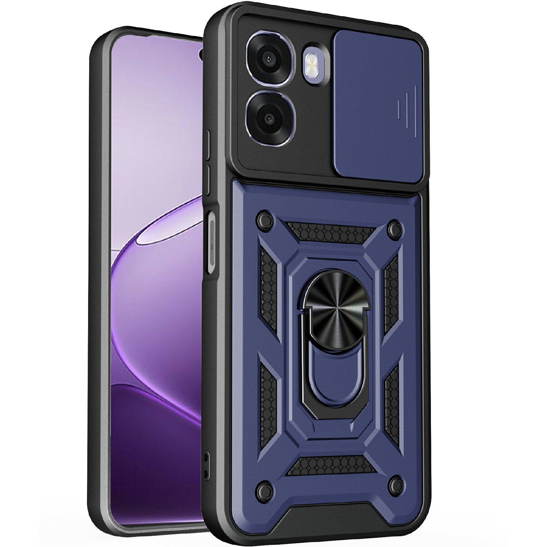 Захисний чохол Deexe Armor Shield забезпечує вашому OPPO A6x всебічний захист від ударів і подряпин завдяки своїй унікальній двошаровій конструкції, що складається з жорсткого полікарбонату і гнучкого TPU. Ця комбінація матеріалів ефективно захищає пристрій від падінь, розподіляючи ударну енергію по всій поверхні. Чохол також оснащений захисною шторкою для камери і м'якими пилозахисними накладками на кнопки. Додаткова особливість – металеве кільце на задній стороні, яке функціонує як зручна підставка і пристрій для надійного кріплення в руці або на магнітній панелі.
