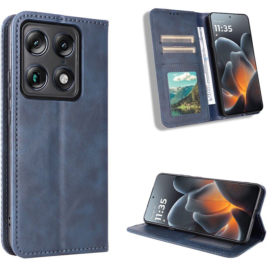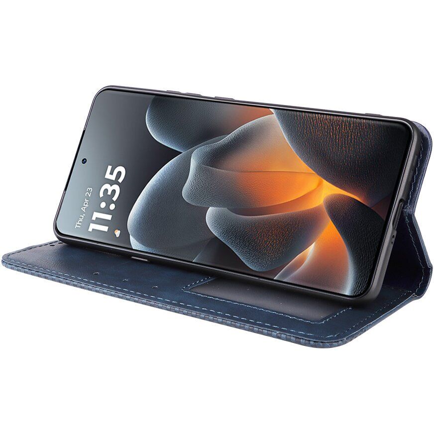 Deexe Retro Style — надійний чохол-книжка з елегантним ретро-дизайном. Він щільно облягає Motorola Signature по периметру, оберігаючи екран і корпус від подряпин, забруднень і випадкових падінь. Конструкція включає міцну обкладинку з екошкіри та еластичний внутрішній тримач із TPU. Вінтажне виконання з витонченим тисненням надає аксесуару індивідуальності, тоді як шорстка зовнішня фактура запобігає ковзанню і не збирає відбитки пальців. Внутрішня частина чохла доповнена низкою кишеньок для пластикових карт і різних дрібниць, а сам він вміє трансформуватися в підставку для комфортного перегляду відео.