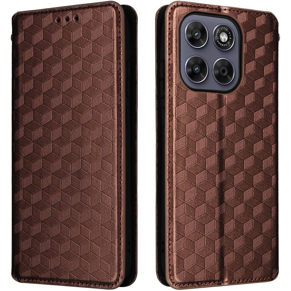 Чохол Deexe Rhombus Book для Motorola Moto G77 - Brown