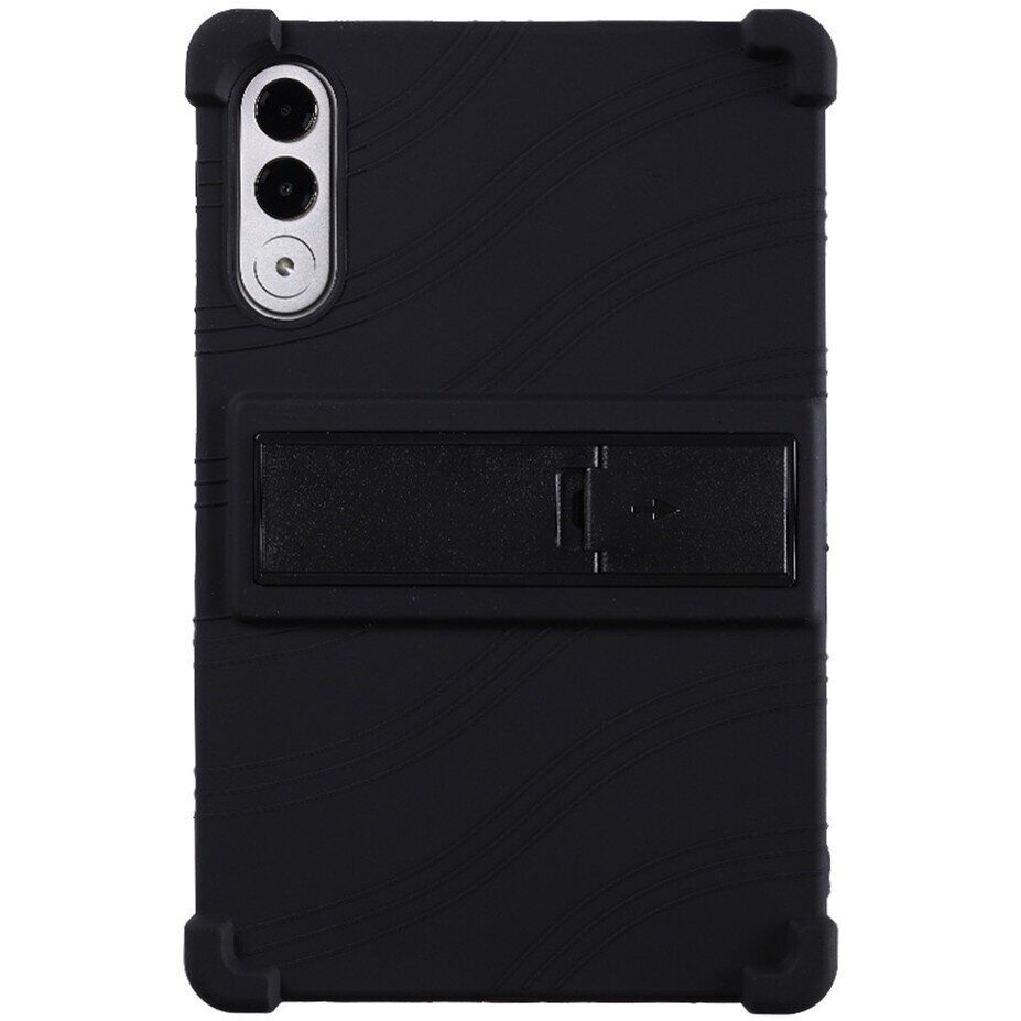 Чохол-накладка Deexe Silicone Kickstand стане ефективним захисним рішенням для Lenovo Yoga Tab 11.1, дозволяючи повністю закрити його корпус від механічних пошкоджень, не ускладнюючи доступ до великого екрану. В якості основного матеріалу виступає щільний силікон, високі амортизаційні характеристики якого дозволяють відмінно справлятися з більшістю ударів і невеликих падінь. Для додаткової безпеки кути аксесуара мають спеціальні потовщення – т.зв. "повітряні подушки", які допоможуть впоратися із найнебезпечнішими видами падінь – ребром або на кут. Внутрішня поверхня має спеціальну стільникову фактуру, яка покращує тепловідведення, знижуючи ймовірність перегріву в чохлі. У конструкції передбачені необхідні отвори для доступу до портів та камери, а також дублікатори клавіш. На спинці можна знайти зручний відкидний упор, який дозволить переглядати відео або читати з екрану, без необхідності тримати планшет у руках.