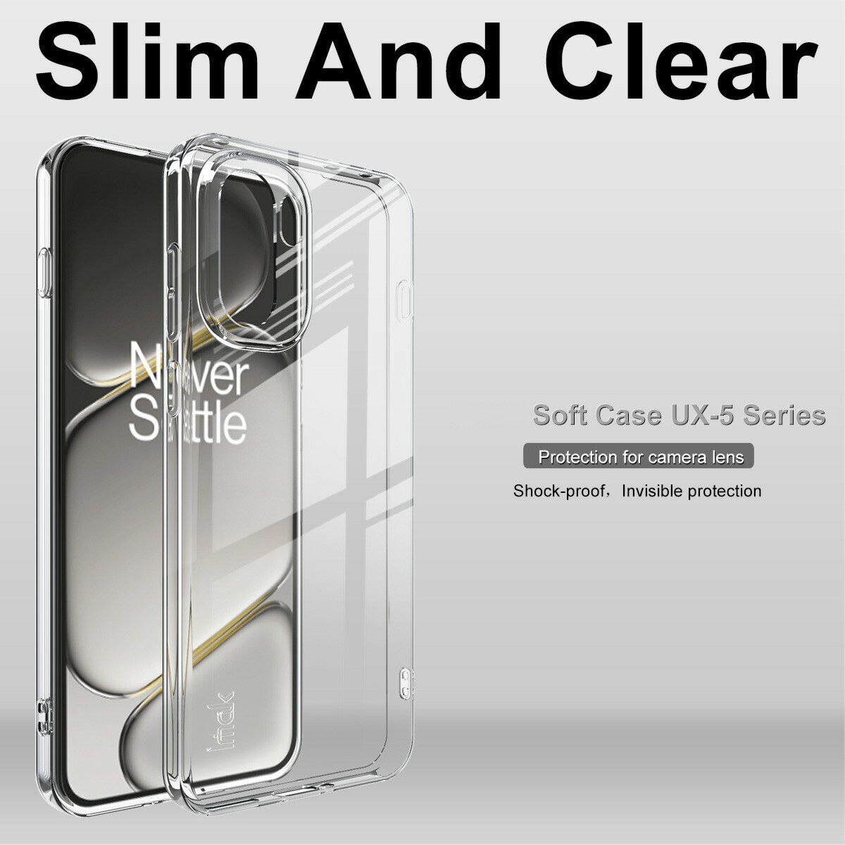 Чохол IMAK UX-5 пропонує невидимий захист для OnePlus 15R / Ace 6 / Ace 6T, поєднуючи в собі елегантність і функціональність. Цей чохол виготовлений із прозорого силікону, який не тільки зберігає дизайн вашого пристрою, але й забезпечує чудовий захист від ударів і бруду. Унікальна еластичність матеріалу допомагає поглинати удари, мінімізуючи можливі пошкодження під час падіння. Конструкція чохла містить точні вирізи для всіх необхідних функцій, включно з портами та камерою, даючи змогу використовувати смартфон із максимальним комфортом.