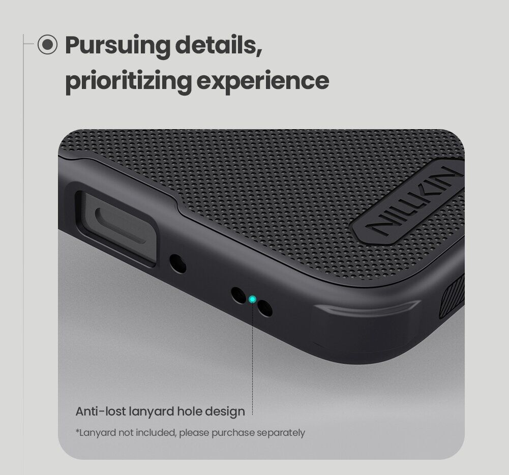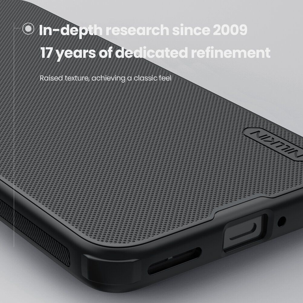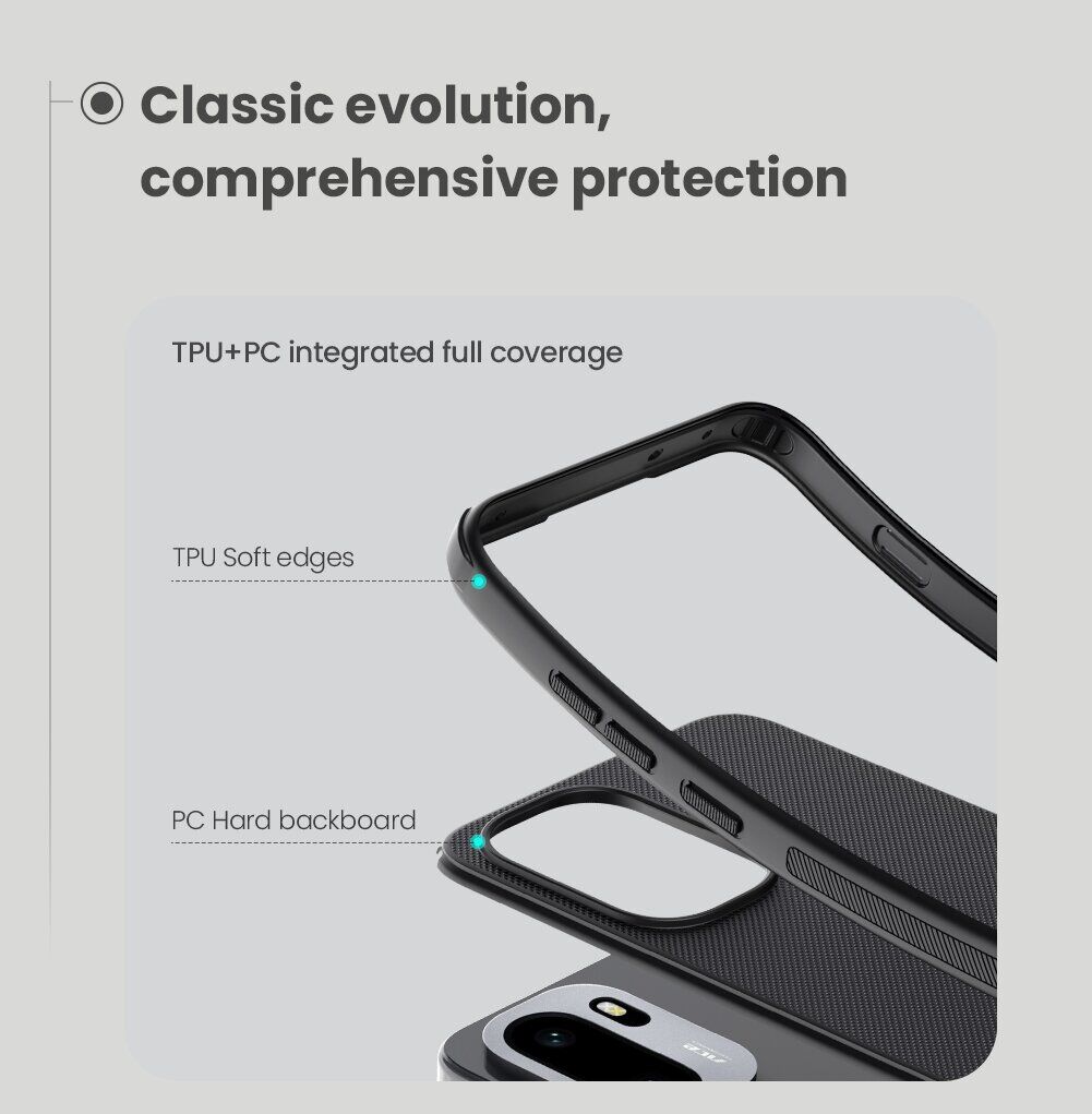 Чохол Frosted Shield Pro від компанії NILLKIN – це ефективне рішення для захисту корпусу OnePlus 15R / Ace 6 / Ace 6T як від дрібних подряпин та потертостей, так і від серйозних сколів та тріщин, здатних виникнути у разі удару. Його конструкція поєднує в собі два матеріали різної жорсткості: міцний пластиковий панцир і еластичний силіконовий кант по периметру, що підвищує його амортизаційні характеристики і дозволяє без особливих наслідків витримувати невеликі падіння. Виробником враховано розміщення апаратних портів, для яких передбачені спеціальні вирізи, а також клавіш, що прикриваються дублікаторами. У надітому стані чохол трохи виступає над рівнем лицьової панелі, утворюючи "захисний борт", який дозволить вільно класти смартфон екраном вниз на будь-яку рівну поверхню, без небезпеки його подряпати.