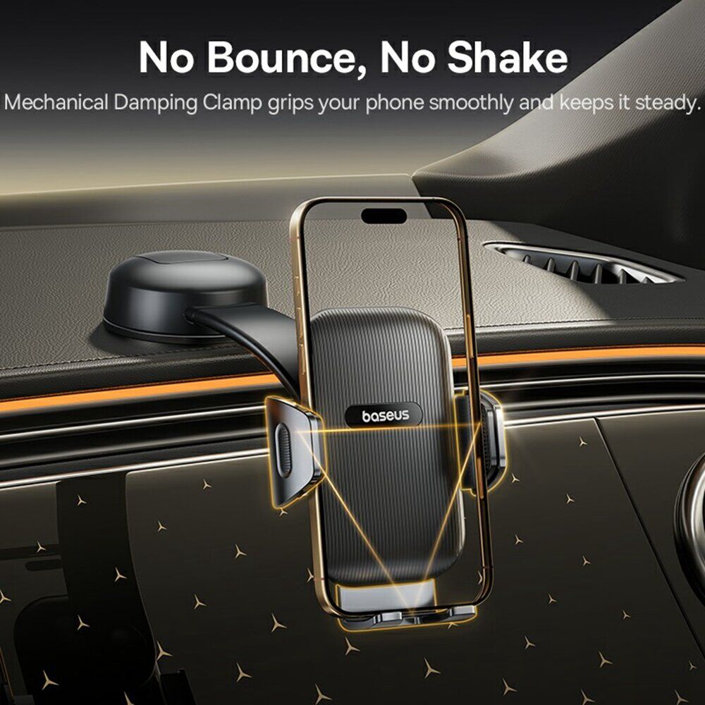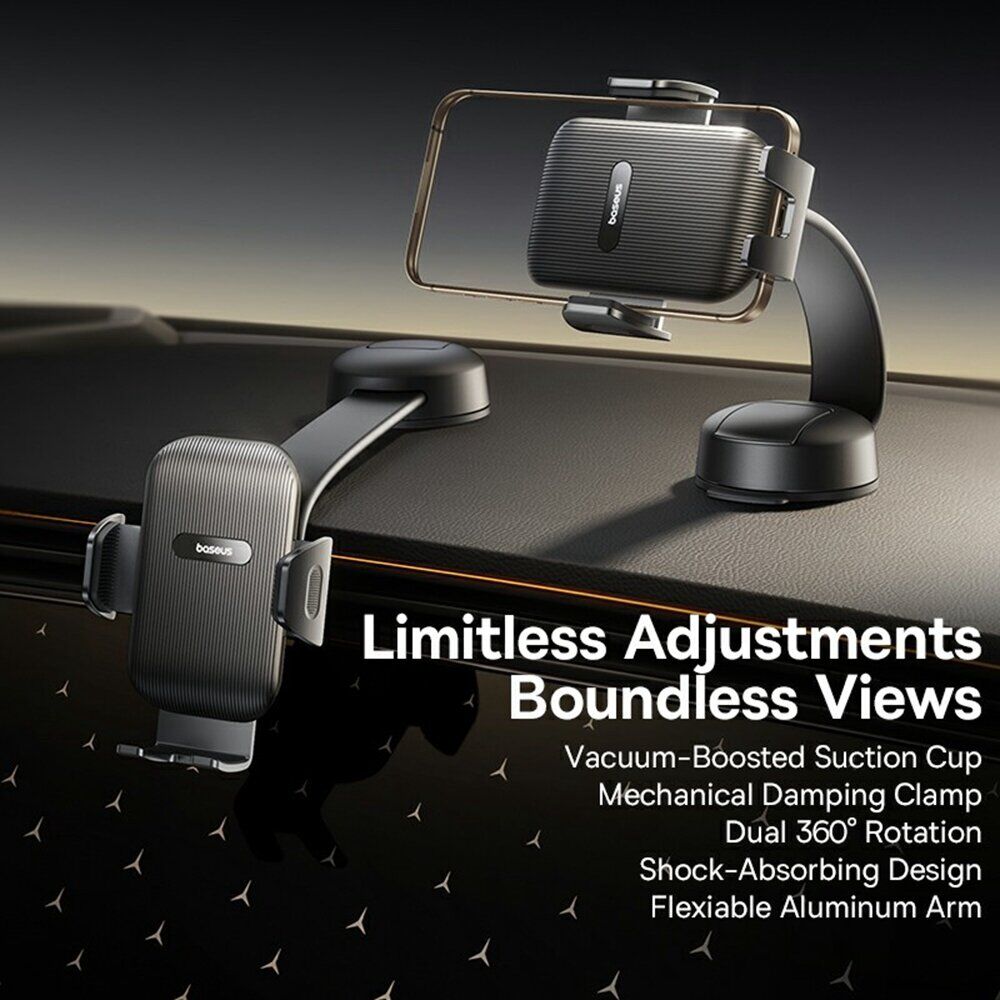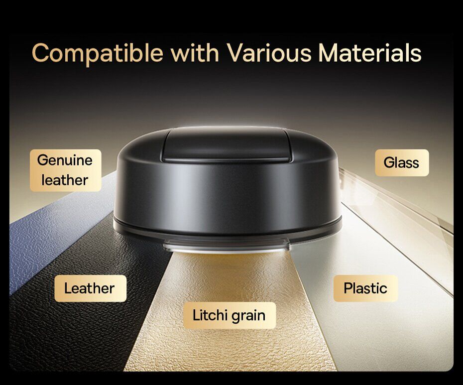 • Кріплення поєднує вакуумну присоску і клейку основу, завдяки чому тримач можна встановлювати на скло або панель, отримуючи більш надійну фіксацію залежно від уподобань водія;