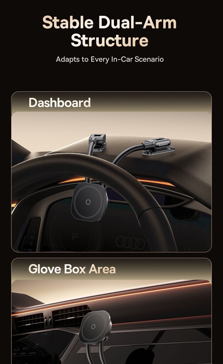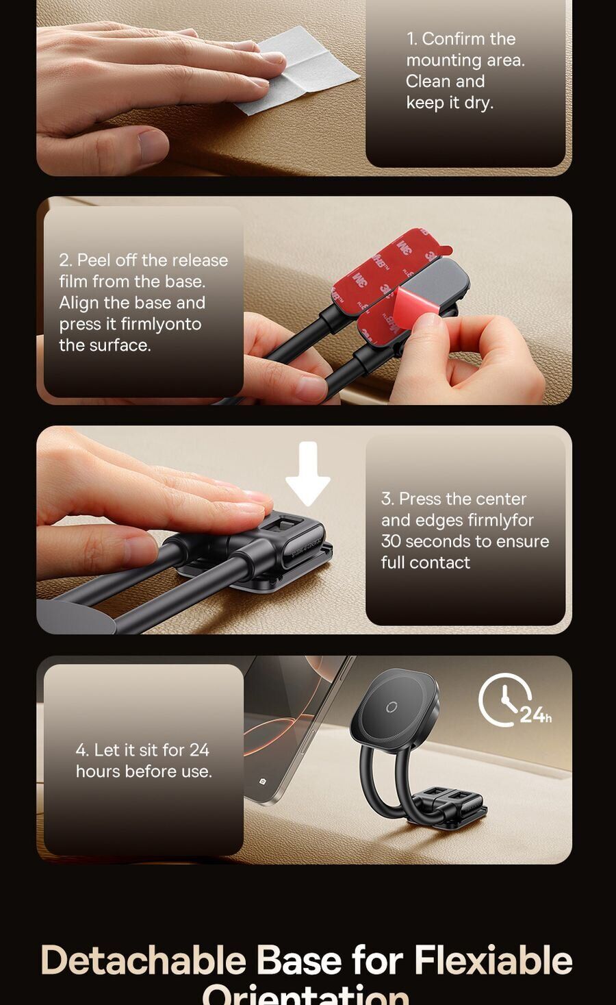• Клейка основа 3M гарантує міцне кріплення на панелі автомобіля без ризику відшарування;
