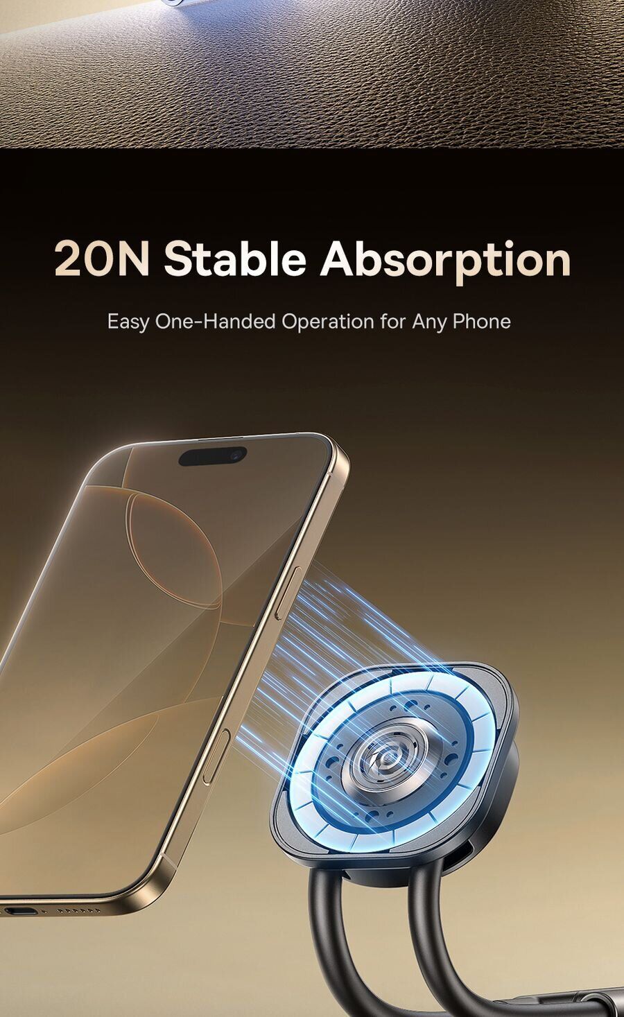 • Магнітна система фіксації забезпечує впевнене утримання смартфона у динамічних умовах руху;