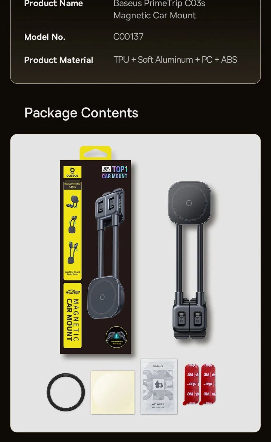 Особливості автомобільного тримача  Baseus PrimeTrip C03s (C0013701):