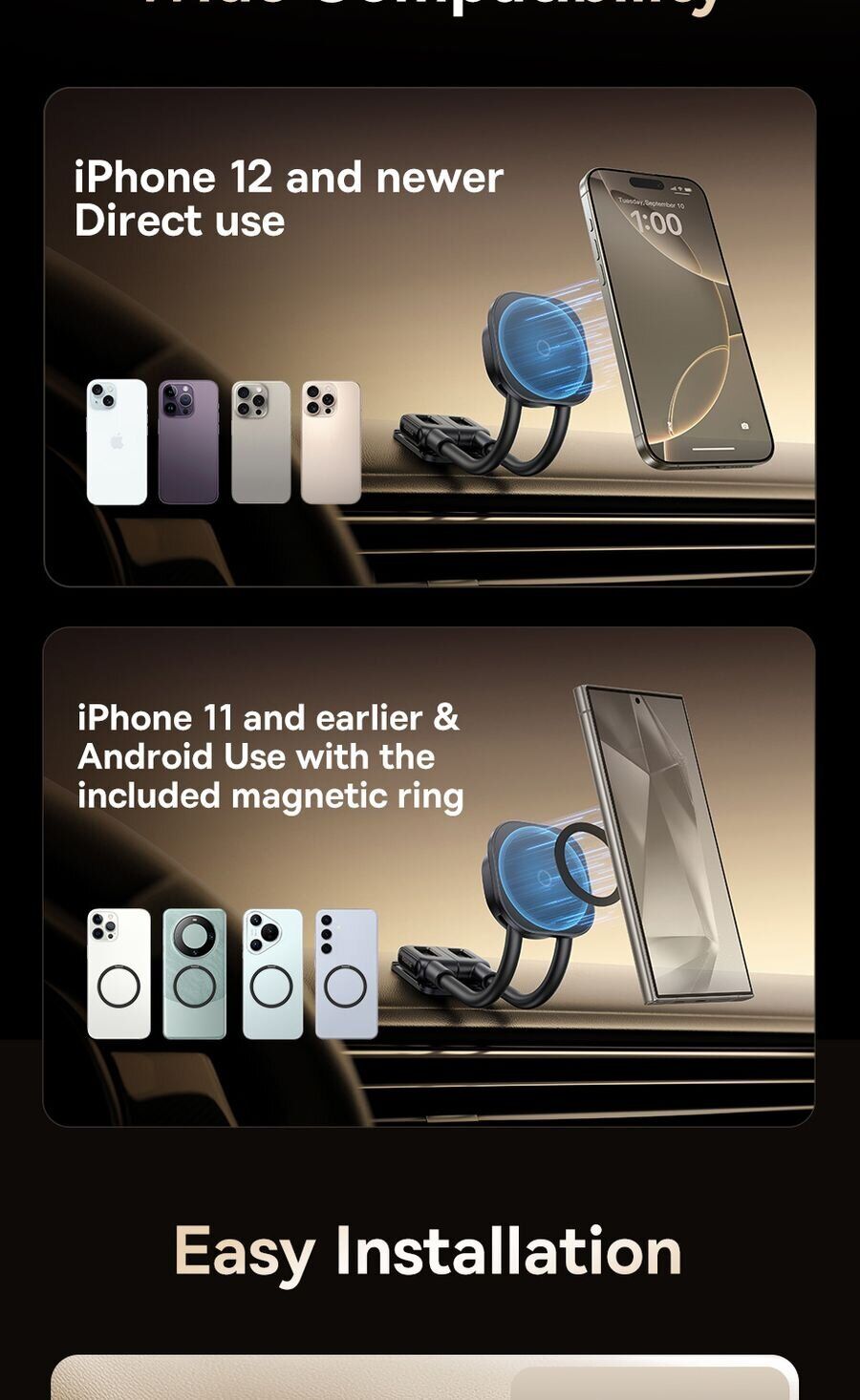 • Просте встановлення та зручне використання роблять тримач практичним рішенням для щоденних поїздок.